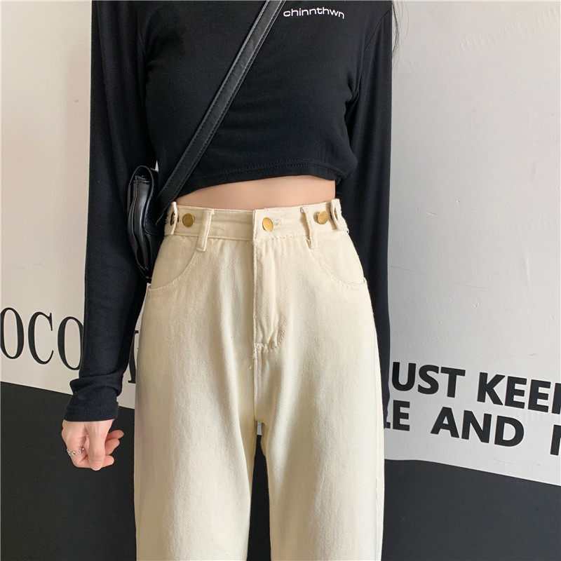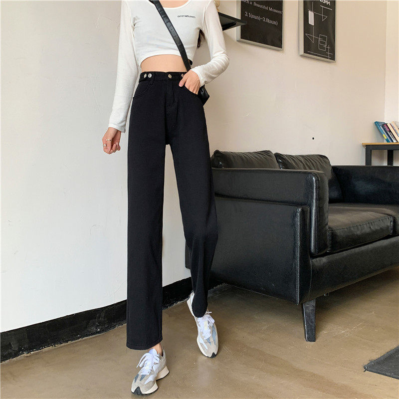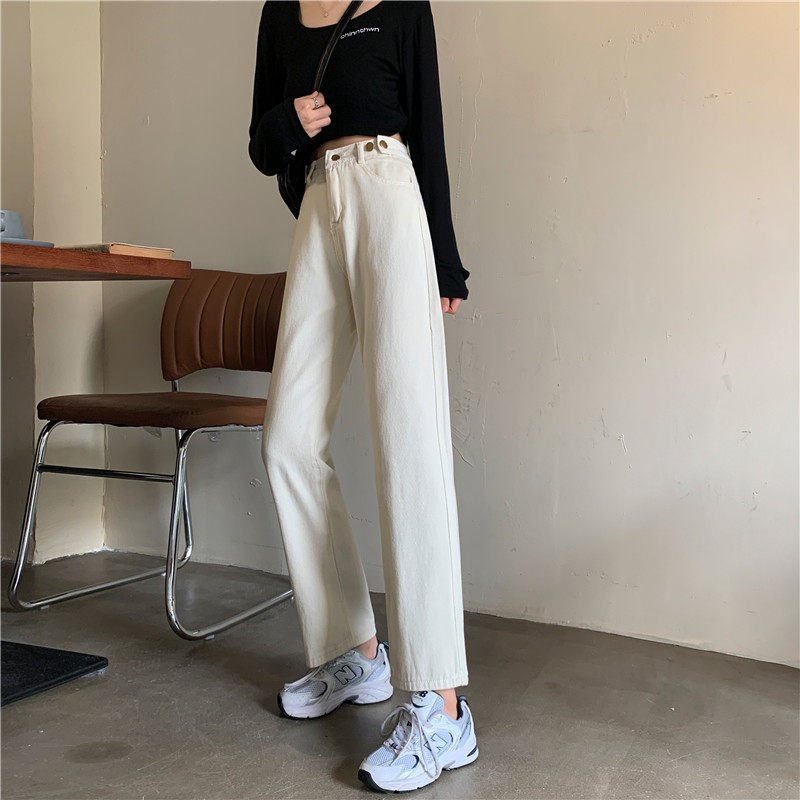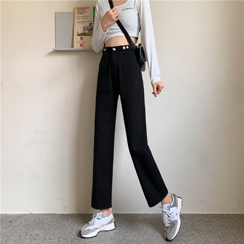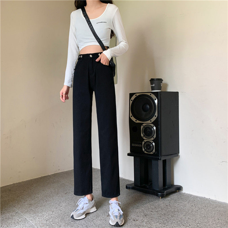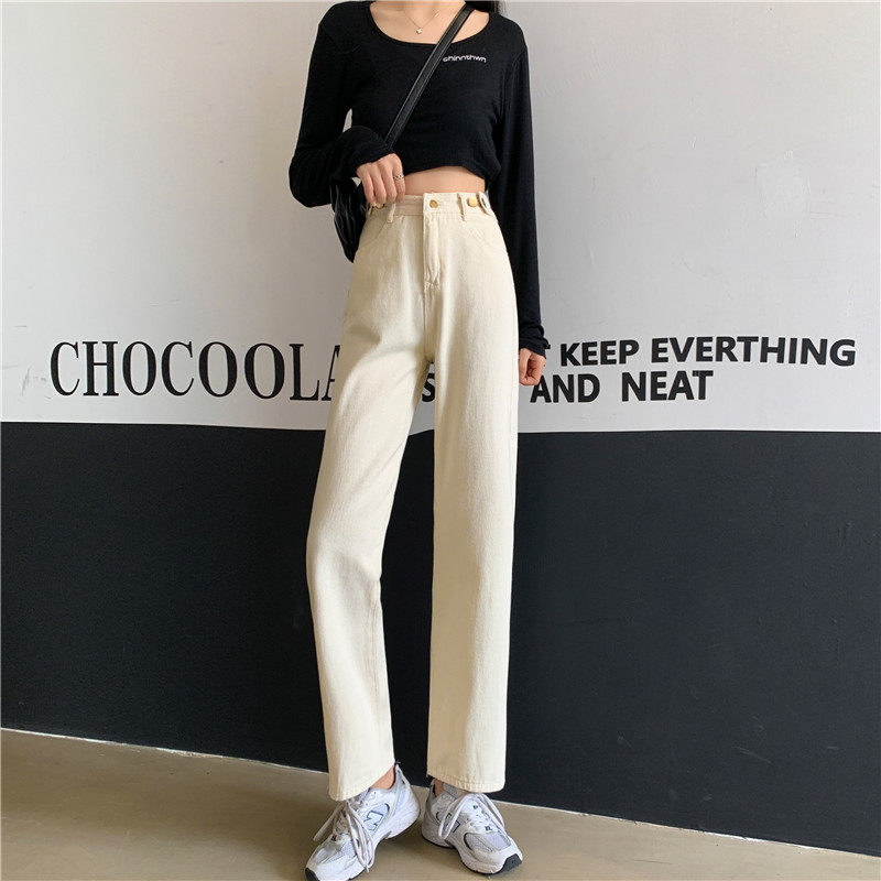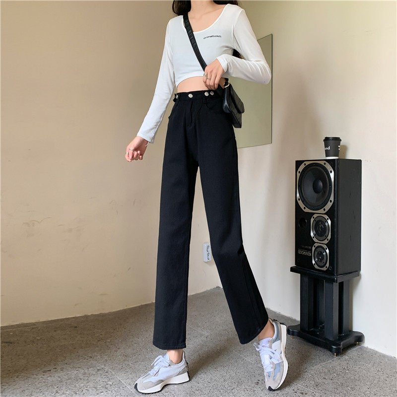 Джинсы, демисезонные осенние штаны, высокая талия, большой размер, коллекция 2023, свободный прямой крой