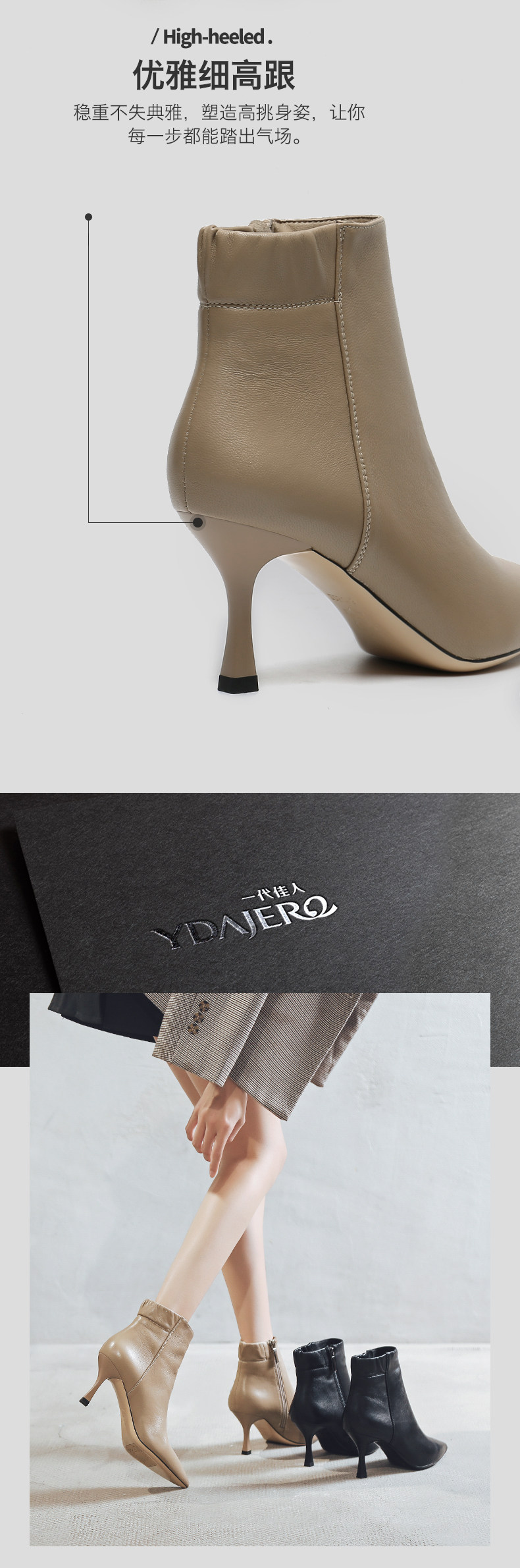 一代佳人 Martens, демисезонные короткие сапоги, универсальные ботинки с молнией, из натуральной кожи