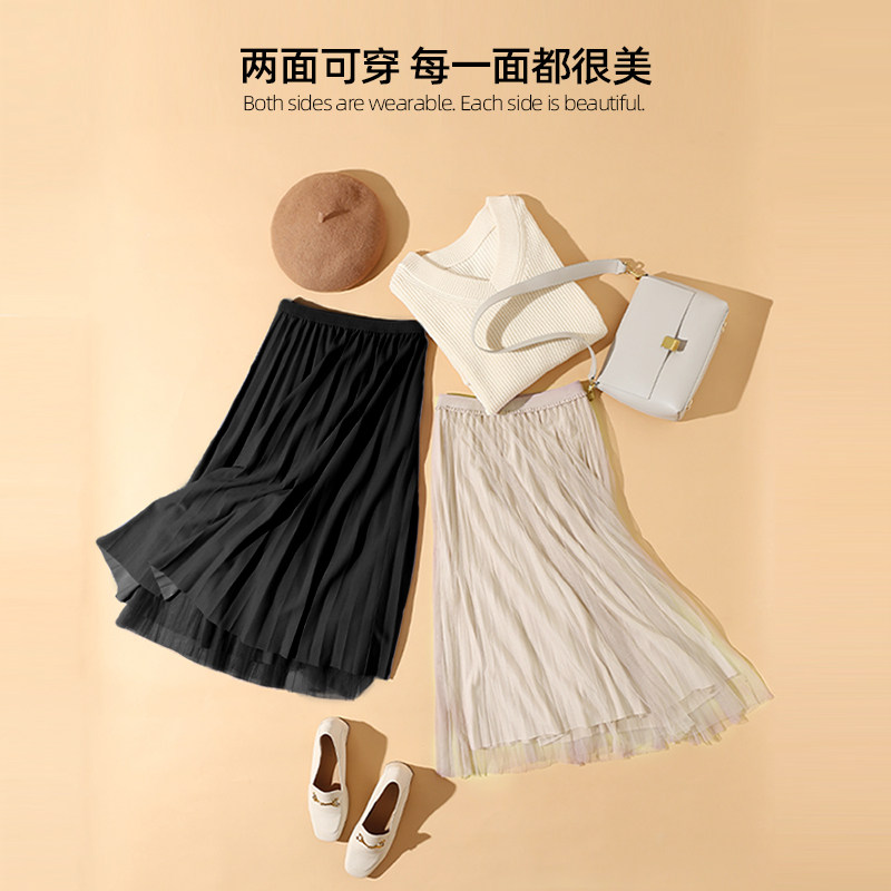 艾米恋 Осенняя черная юбка в складку, высокая талия, подходит для подростков, по фигуре