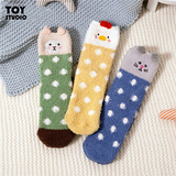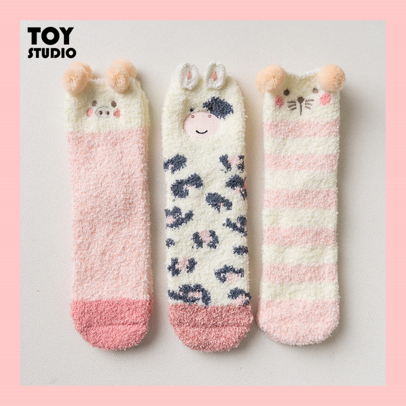 Карамелла простые мультипликационные коралловые бархатные носки Японские милые девушки в зимних носках держат теплые плюшевые носки для сна
