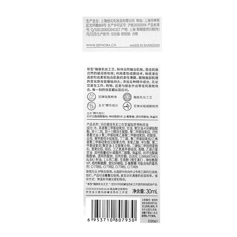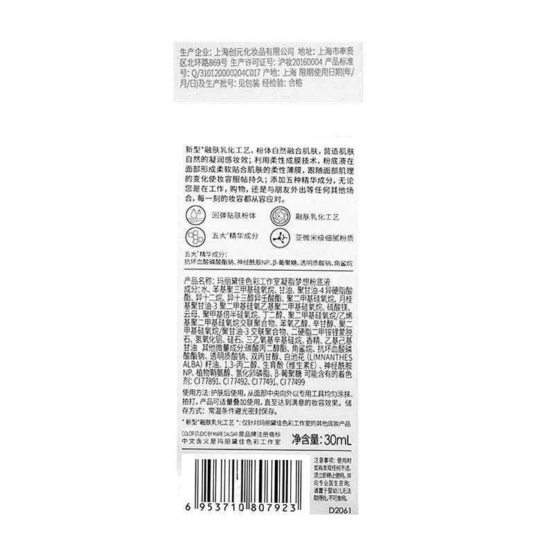 Color Studio/Mary Daijia Color Studio Compubation Dreaming Dream Dream of Foundation Foundation Dry Skin Модель бутылка