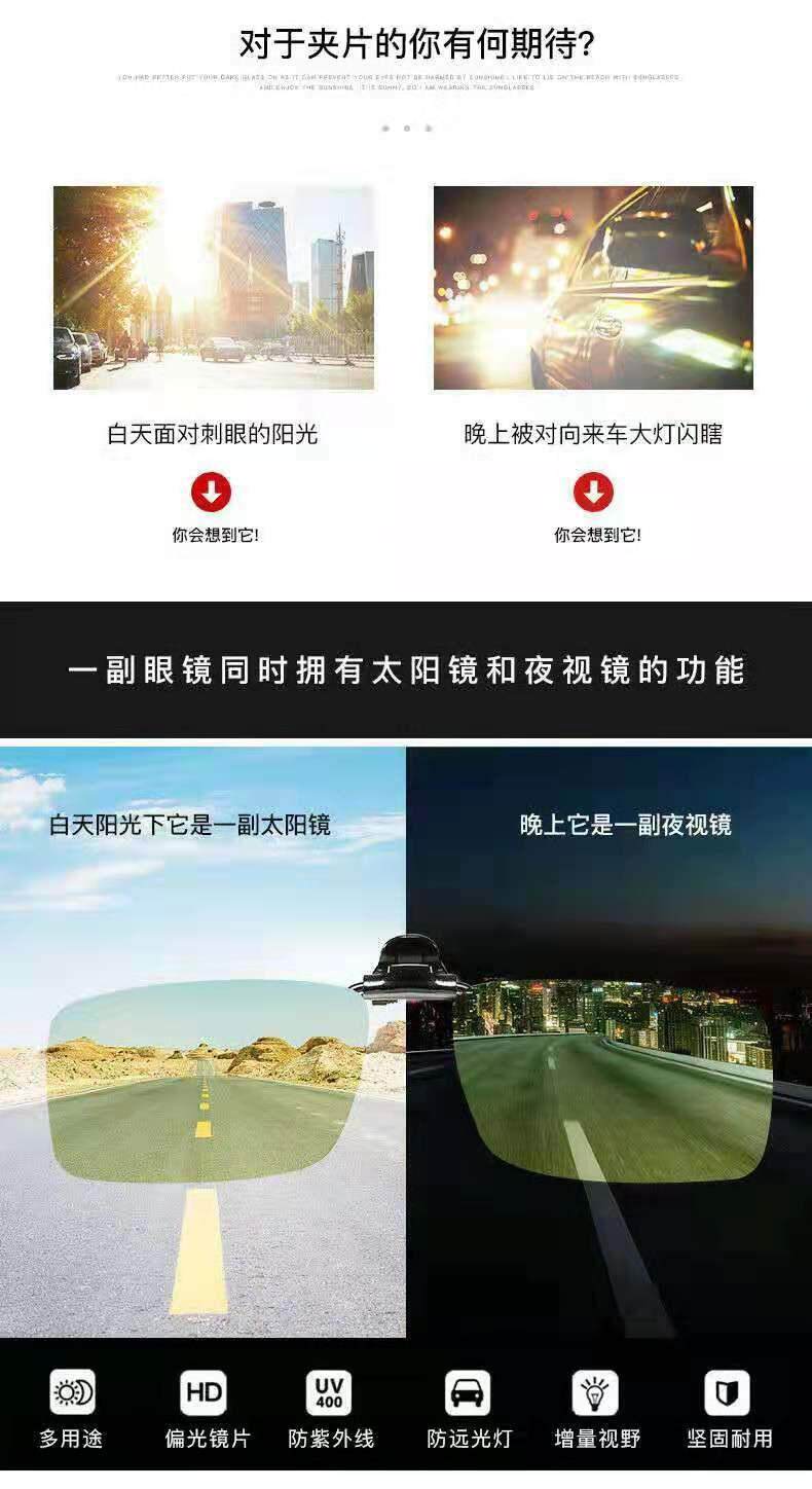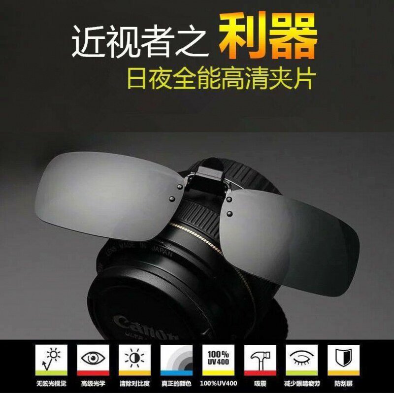 - В течение дня [солнцезащитные очки Clip] Черно-серые зажимы+коробка+ткань+плоские стаканы