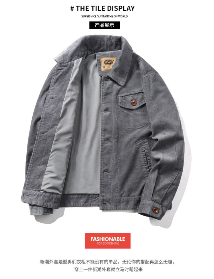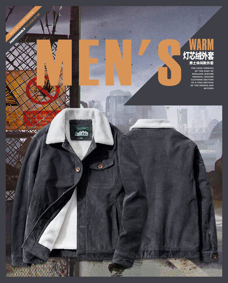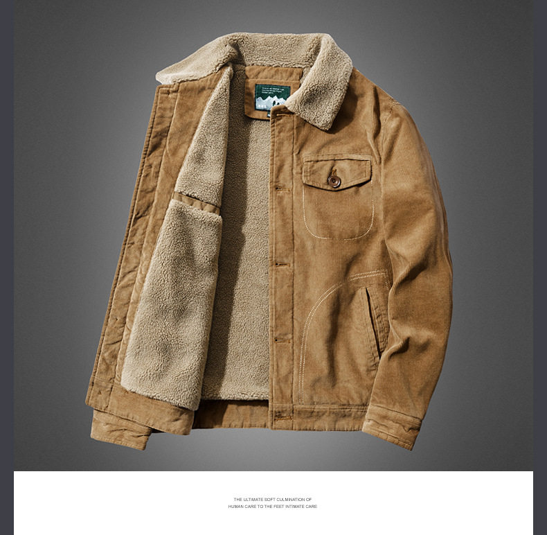 Вельветовая мужская утепленная бархатная ретро куртка, оверсайз