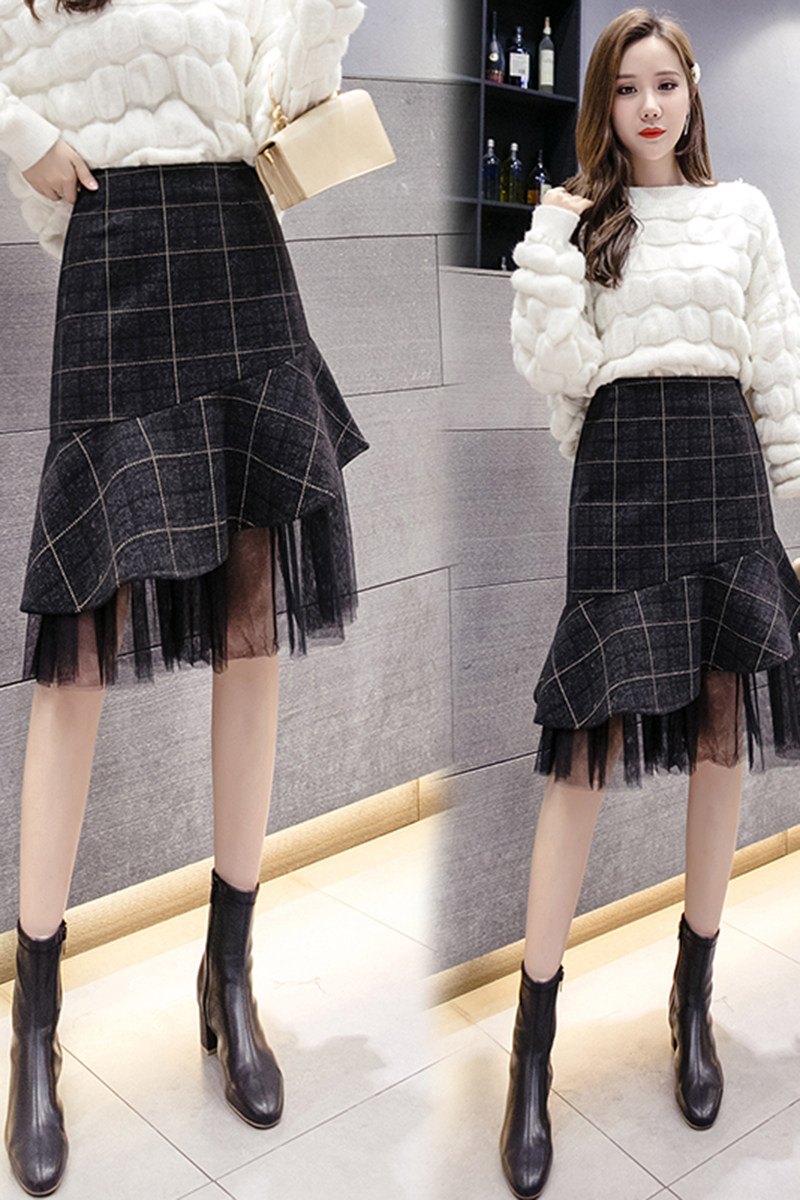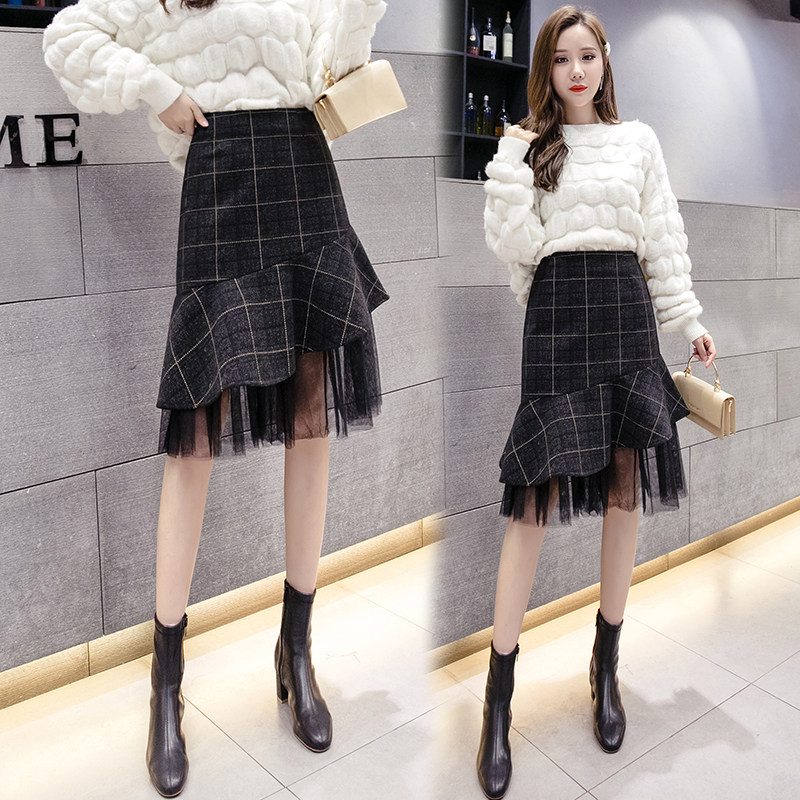 Шерстяная клетчатая осенняя модная юбка, коллекция 2021, высокая талия, яркий броский стиль, рыбий хвост