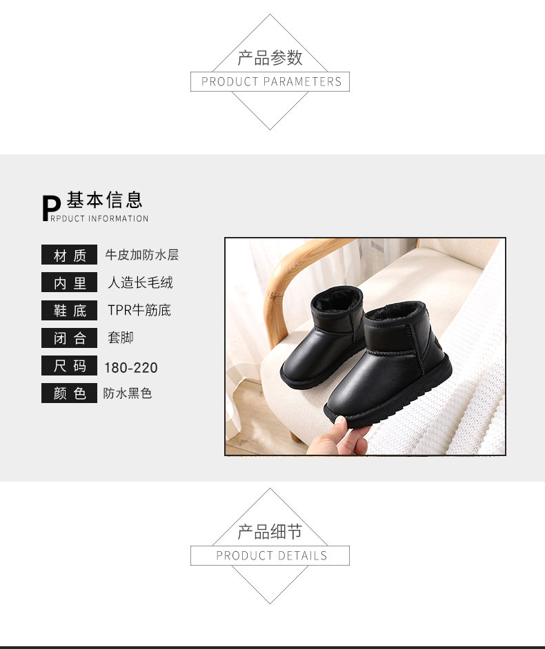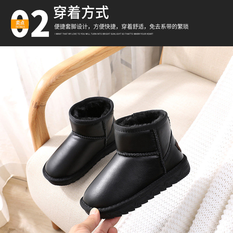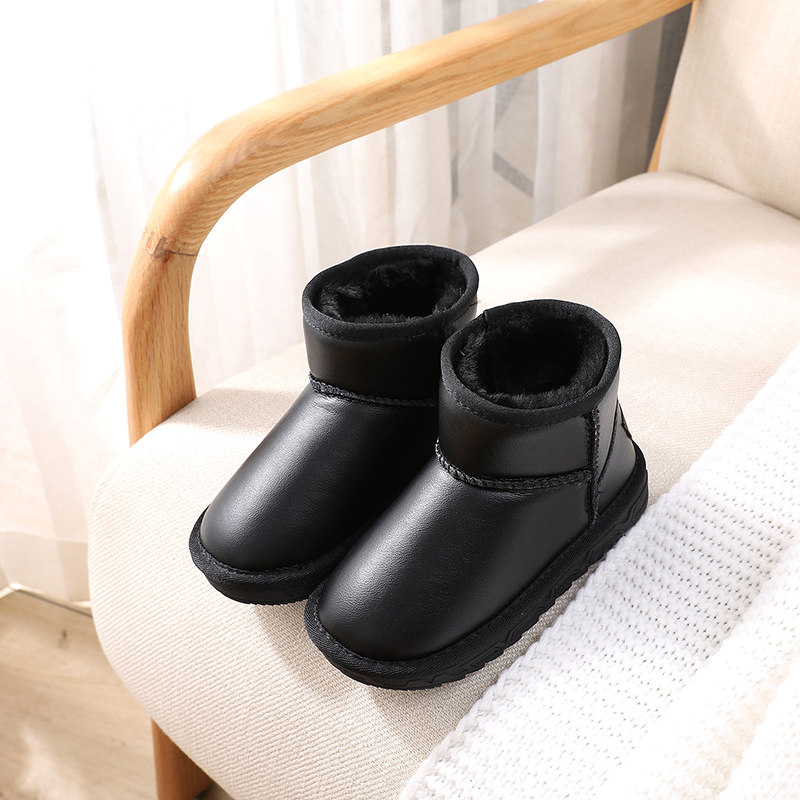 Детские зимние ботинки из натуральной кожи, водонепроницаемые, для родителей и детей, для мальчиков и девочек, бархатные утепленные теплые зимние противолыжные хлопковые туфли