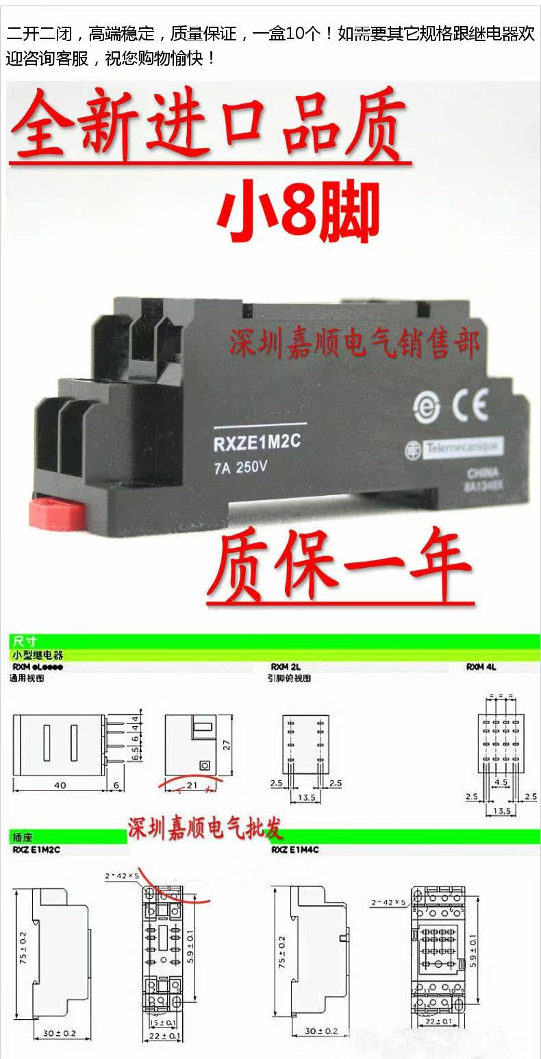 Небольшое 8-контактное промежуточное реле Base Rxze1m2c 7a250V сокет RM2S-UL/My2nj/H3y/Rxm2