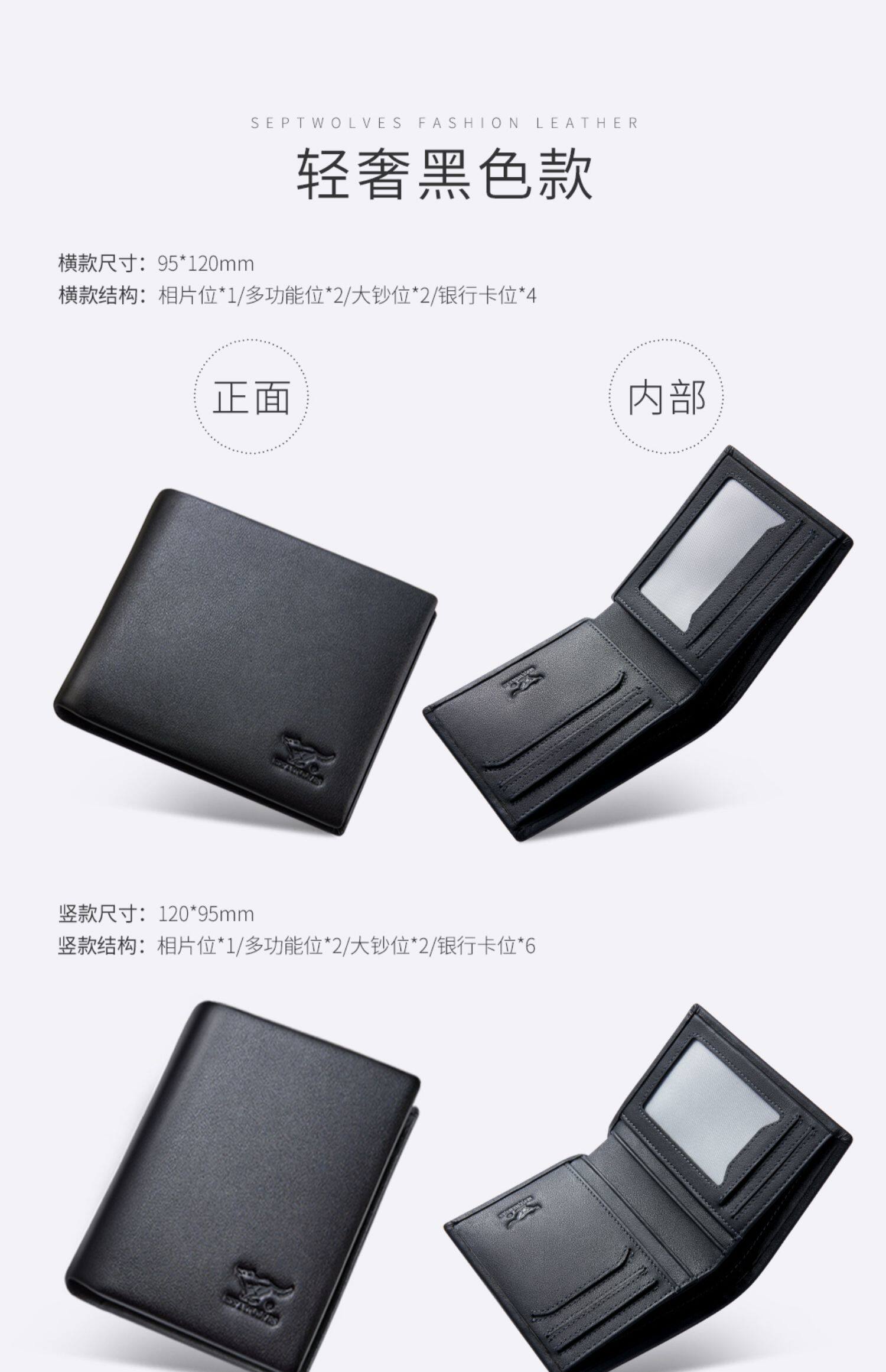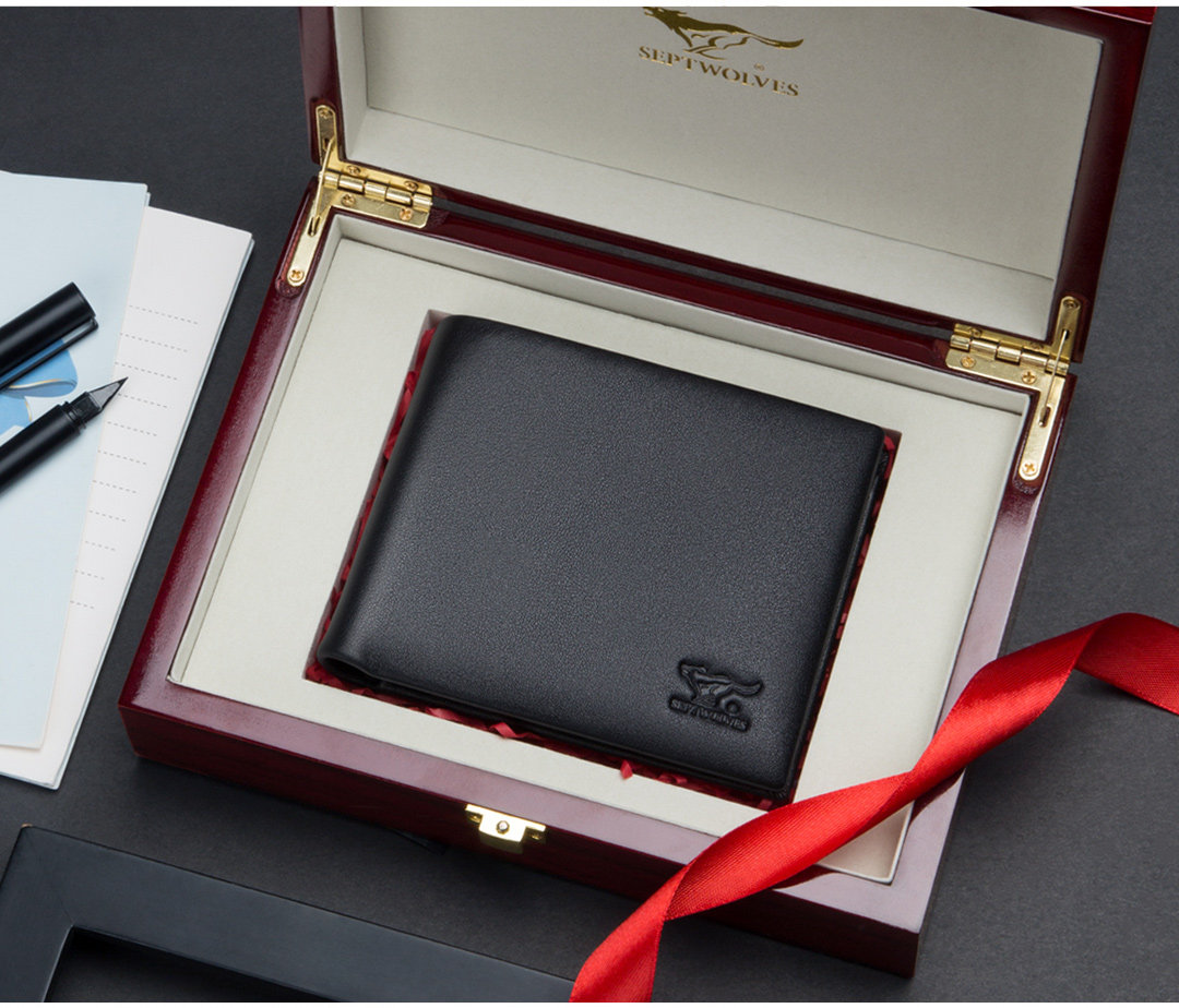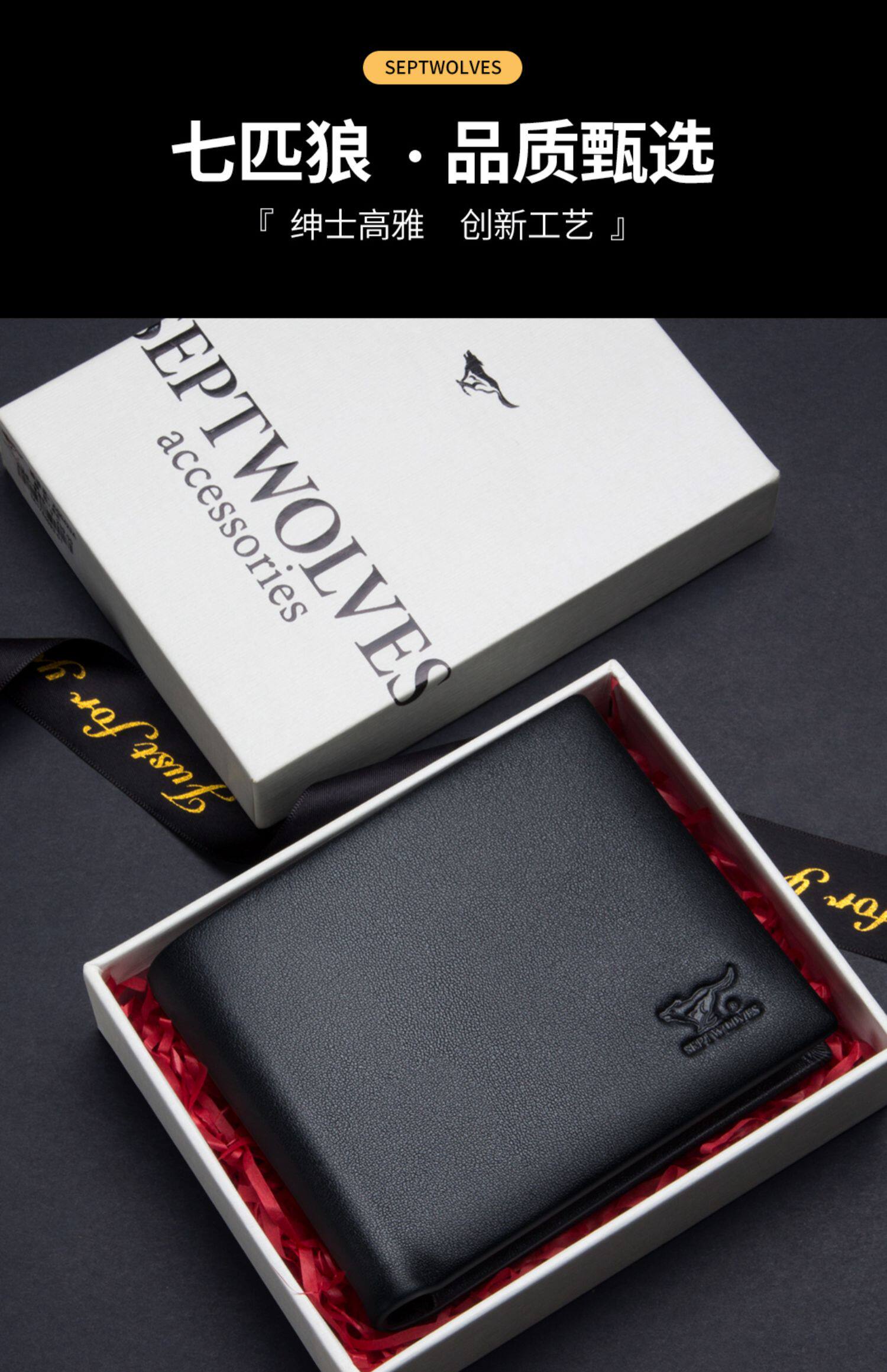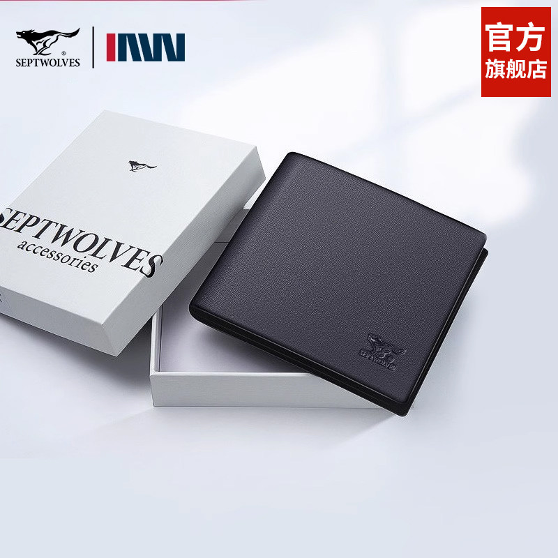 Septwolves, мужской бумажник, ультратонкий короткий картхолдер, подарок на день рождения, из натуральной кожи