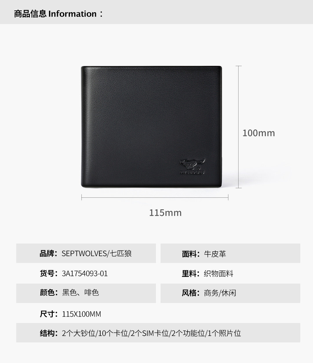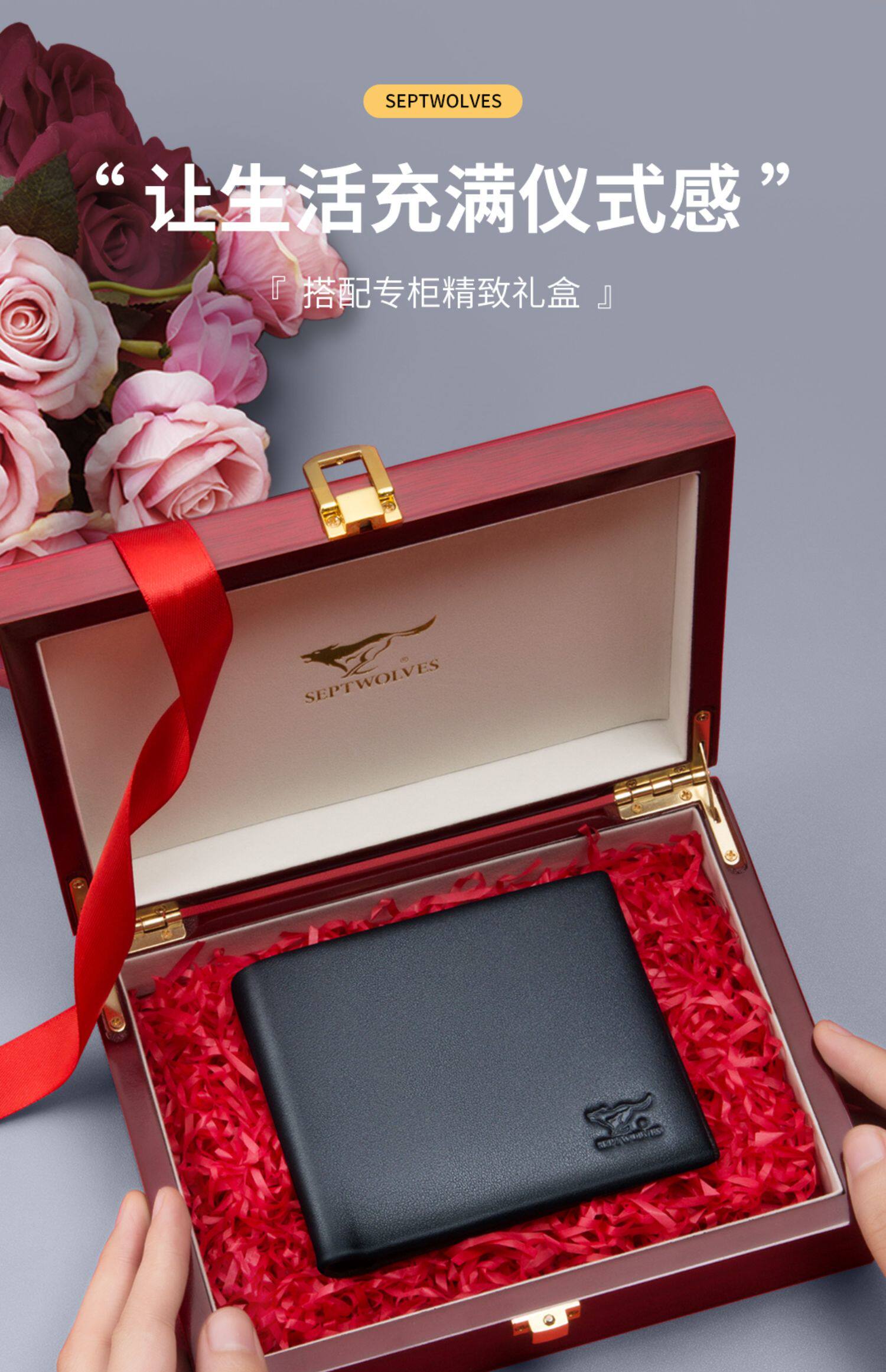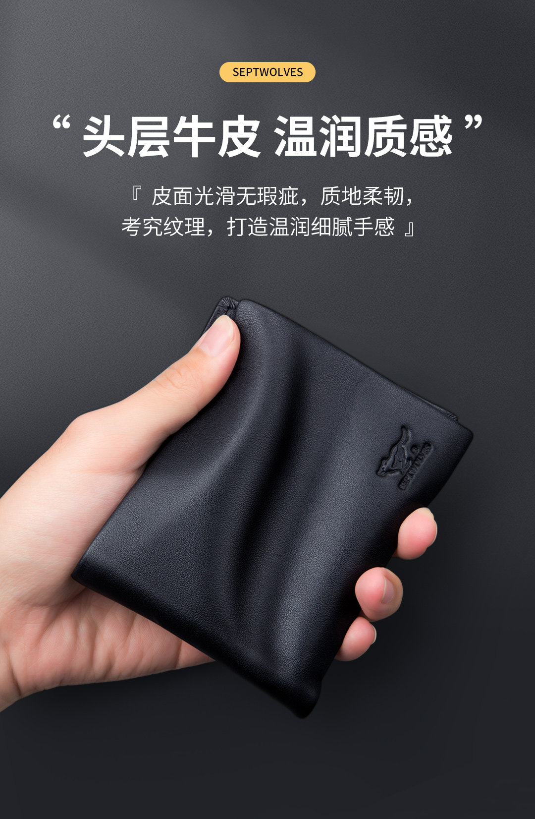 Septwolves, мужской бумажник, ультратонкий короткий картхолдер, подарок на день рождения, из натуральной кожи