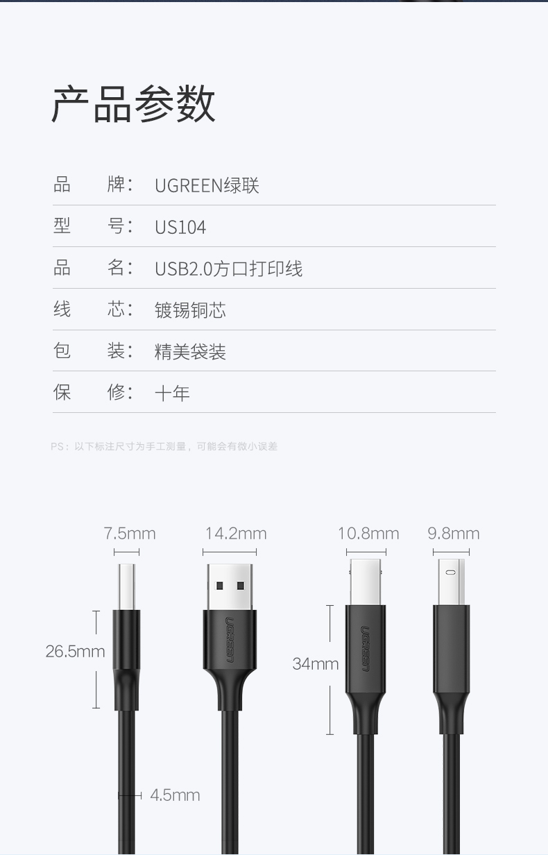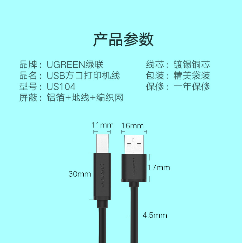 Ugreen Union US135 USB2.0 Линия печати Золото Dalgenic USB A до B Кабель принтера