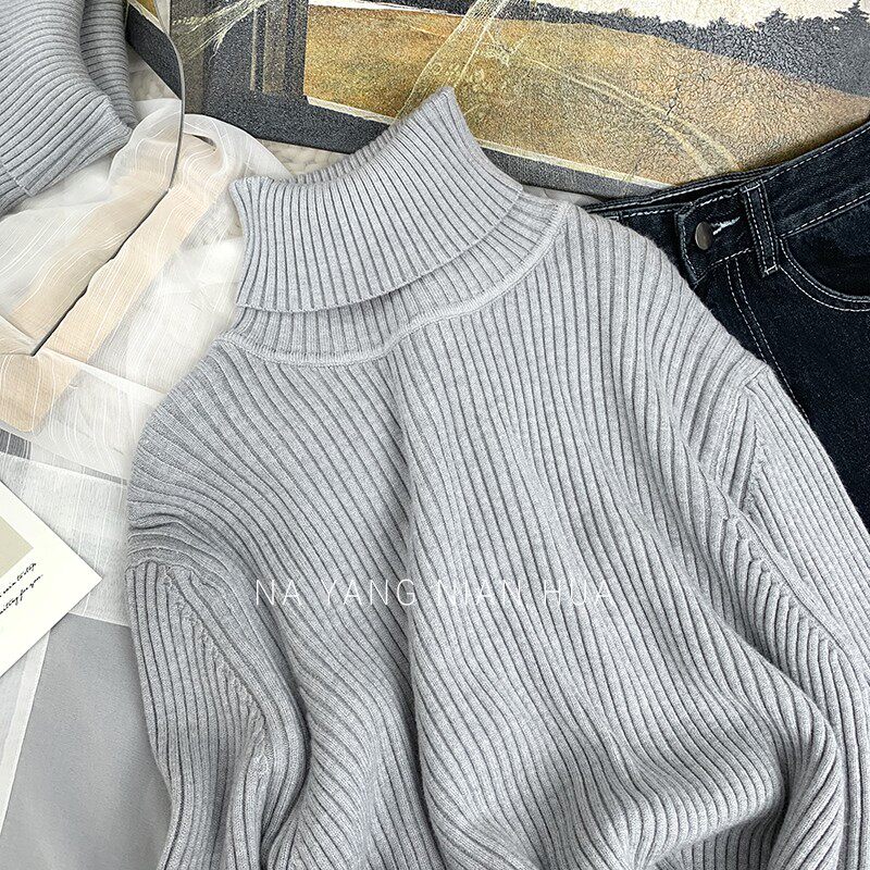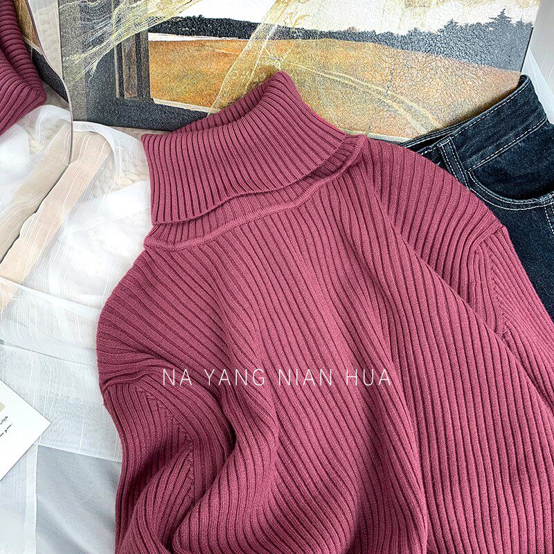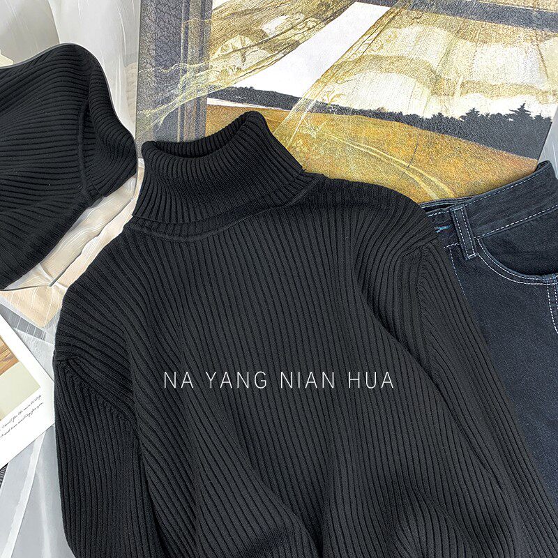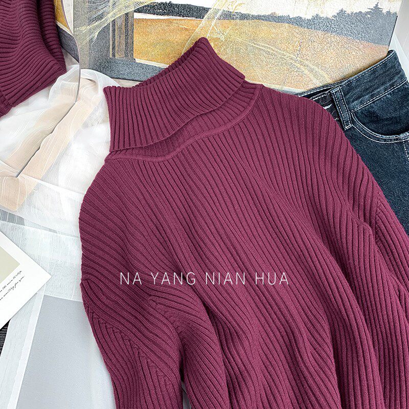 Трикотажный базовый свитер, свободный крой, в западном стиле