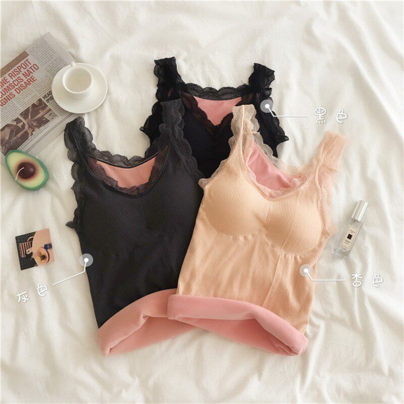 Демисезонный топ с чашечками, вставки в бюстгальтер, флисовая кружевная шелковая майка топ, приятное телу удерживающее тепло нижнее белье, 2020 года, увеличенная толщина