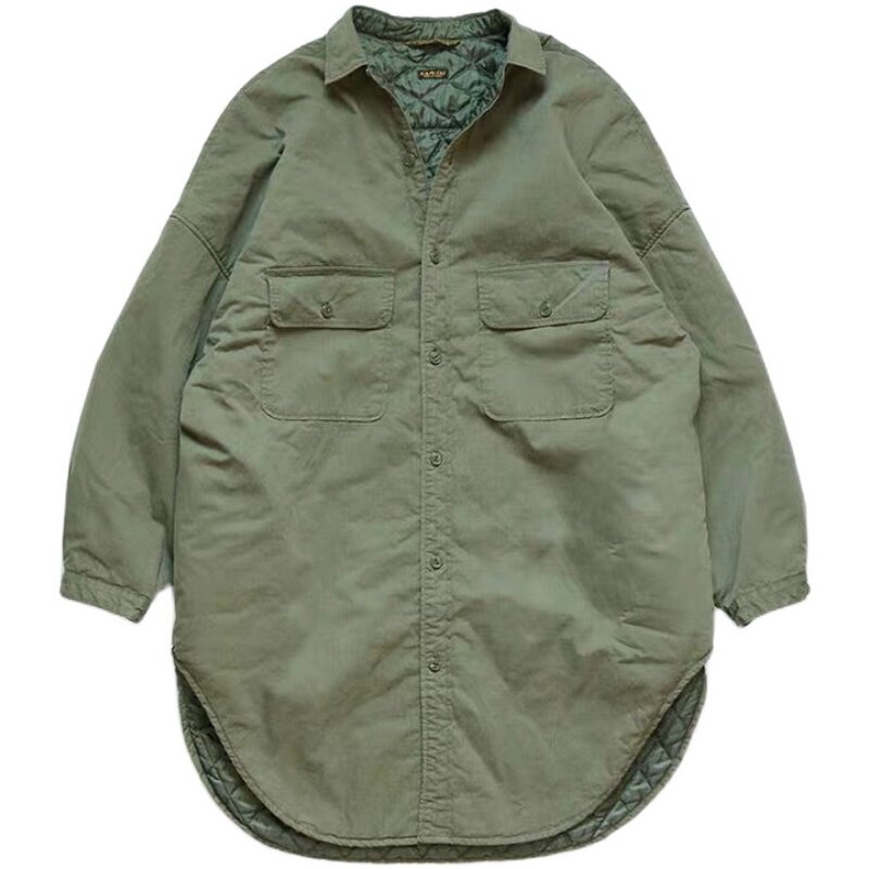 Японская ретро длинная стеганая куртка, средней длины, свободный крой