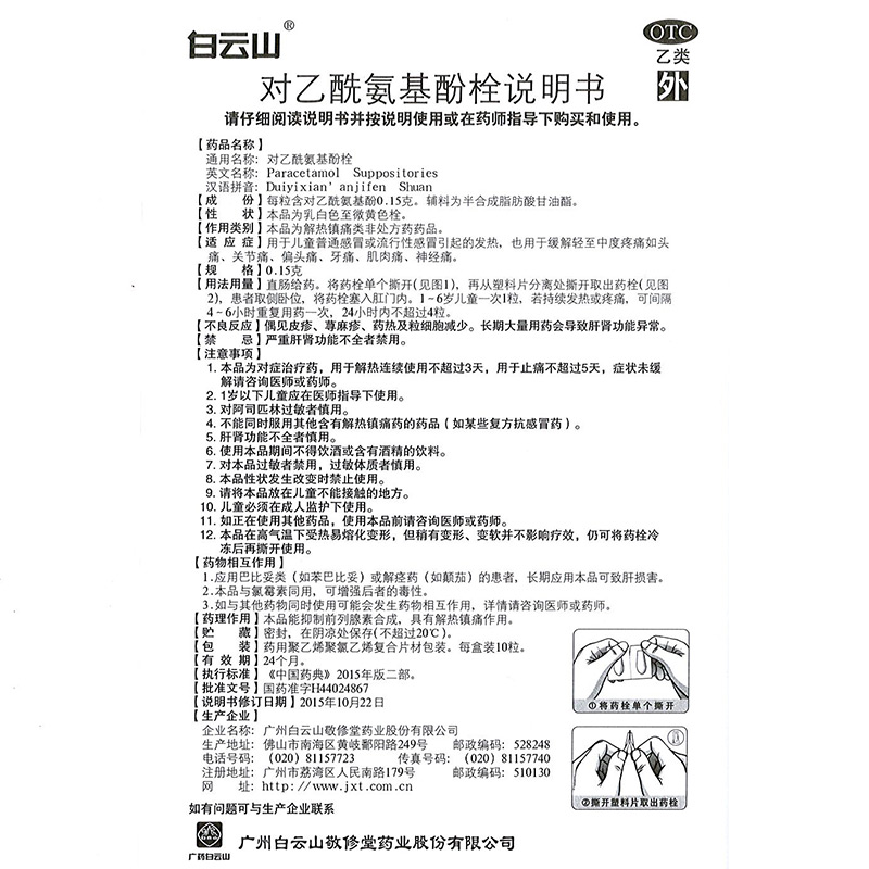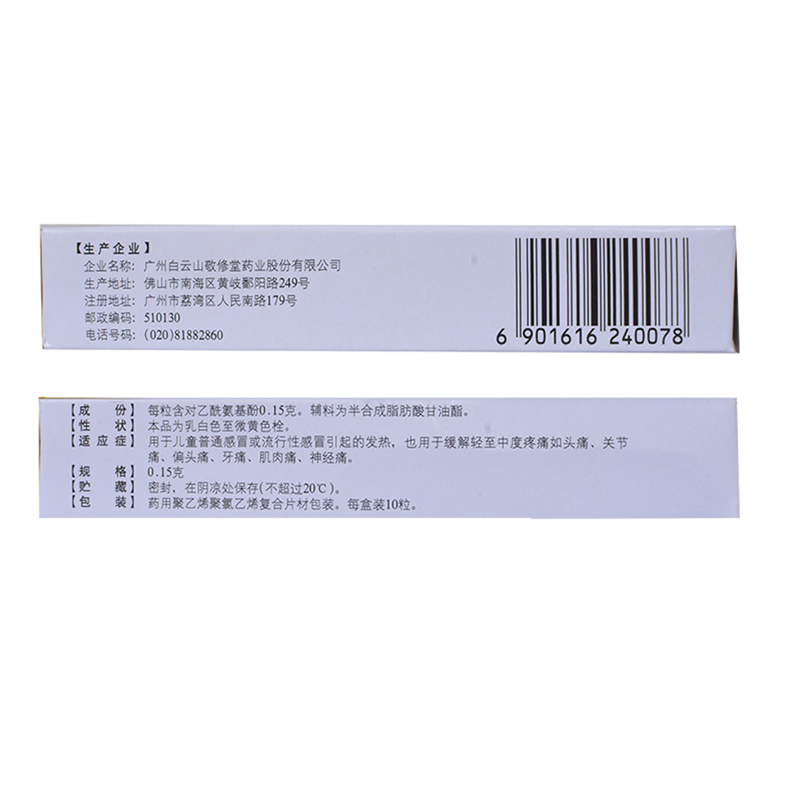 白云山 Ацетаминофенолол 0,15 г*10 капсулы/коробка HX дети простужаются