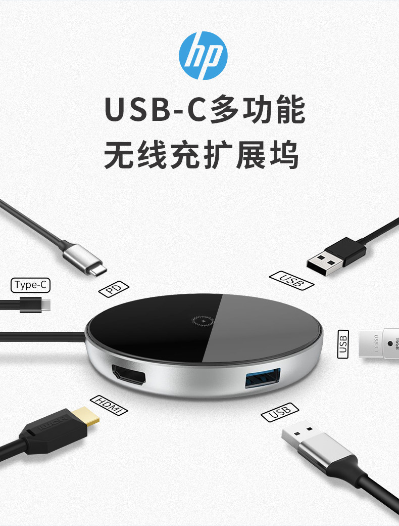 [Live Exclusive] HP HP Type-C Беспроводная зарядная дока USB Line Line HDMI Multi-Interface