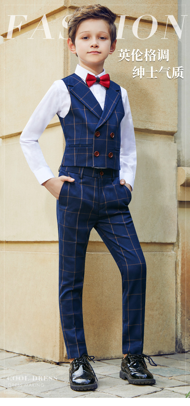 Детский жилет, комплект, костюм мальчика цветочника, платье, весенний наряд для музыкальных выступлений для мальчиков, в британском стиле