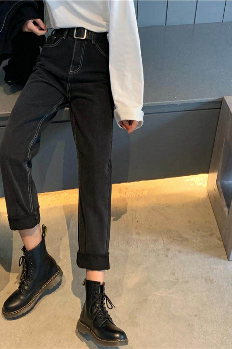 Черные осенние джинсы, штаны, приталенные леггинсы, большой размер, высокая талия, свободный прямой крой, подходит для полных девушек
