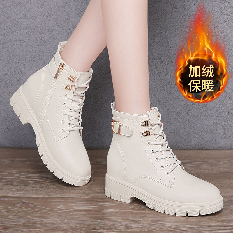 Martens, флисовые белые демисезонные универсальные короткие сапоги в английском стиле на платформе, ботинки, из натуральной кожи, в британском стиле