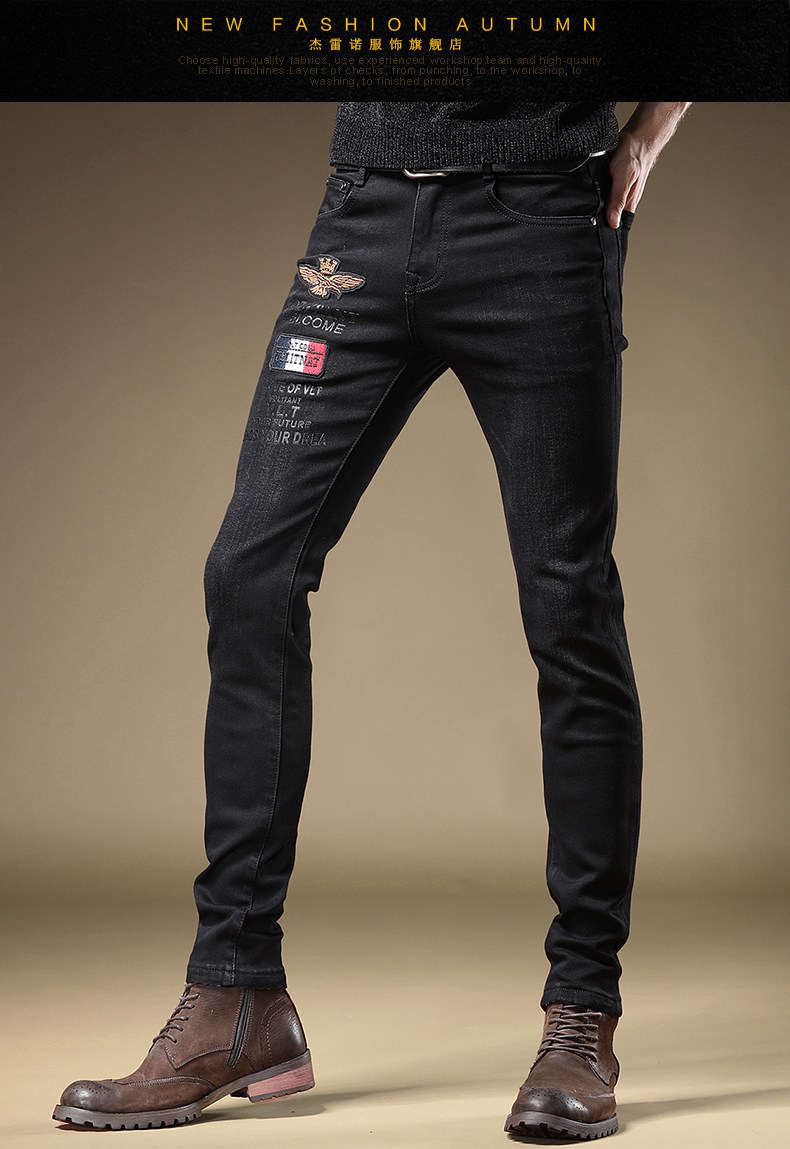 Зимние флисовые демисезонные джинсы с начесом, черные джинсы, облегающий крой, увеличенная толщина, с вышивкой