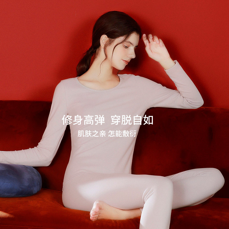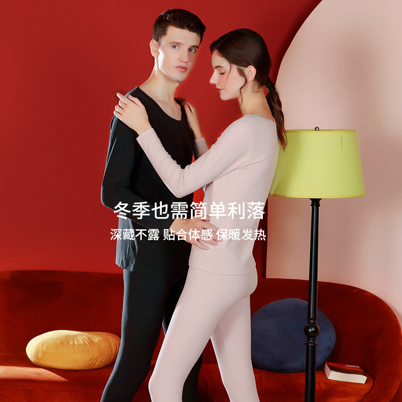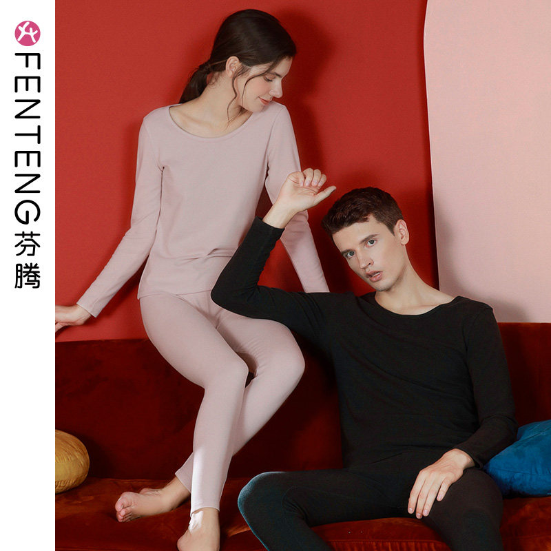 芬腾 Бархатное удерживающее тепло базовое нижнее белье, термобелье с круглым воротником, комплект, облегающий крой, для влюбленных