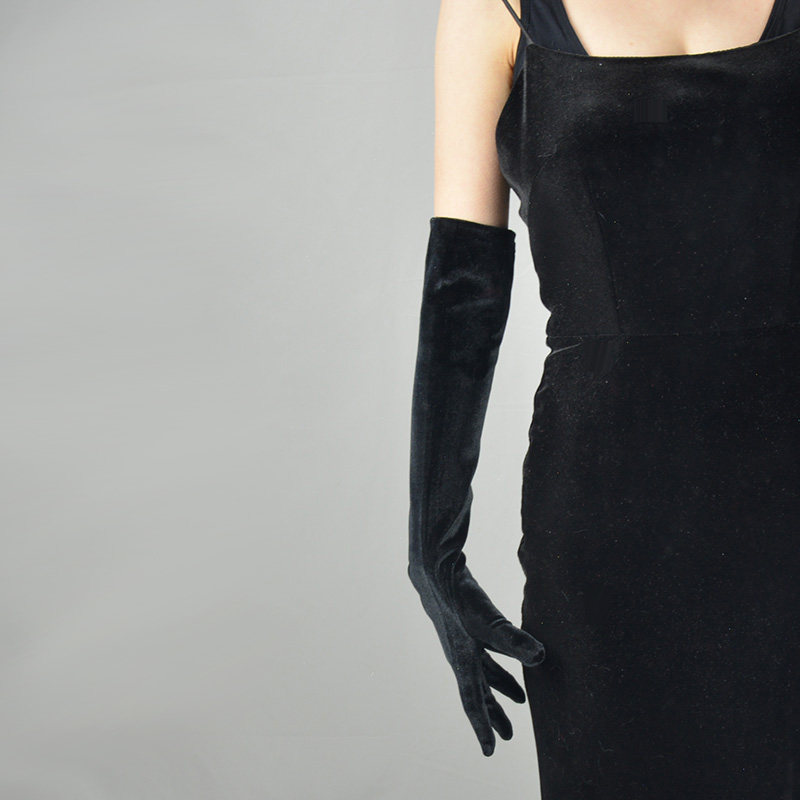Демисезонные бархатные перчатки, длинный ретро комплект, черный коралловый бархатный лебедь, вечернее платье