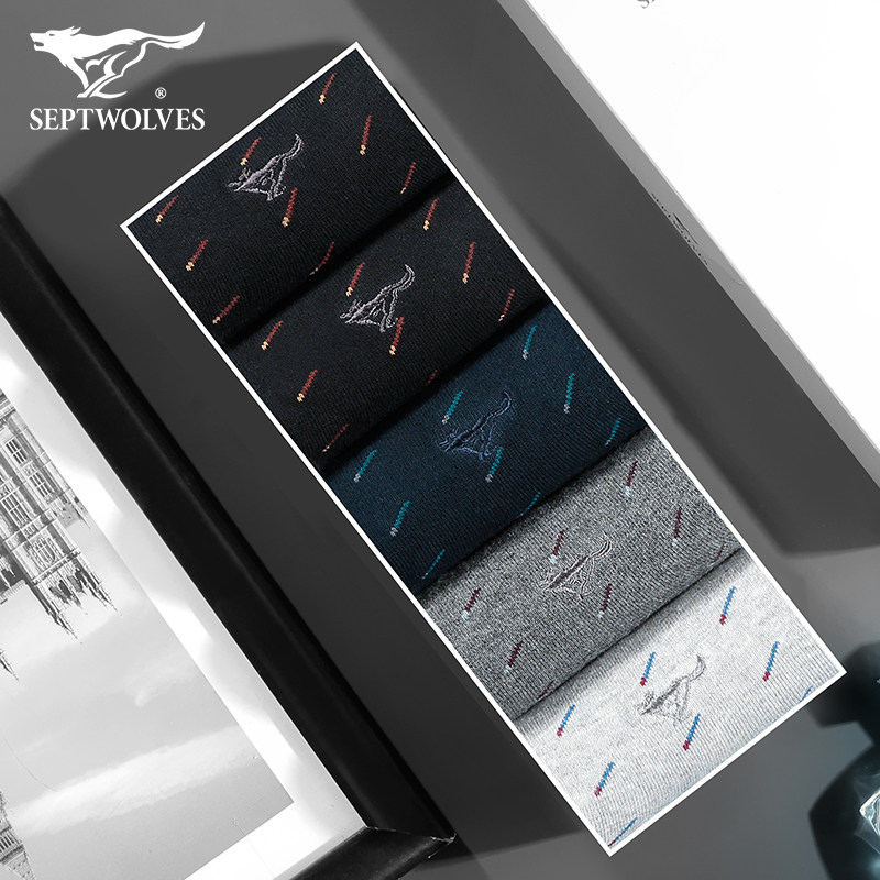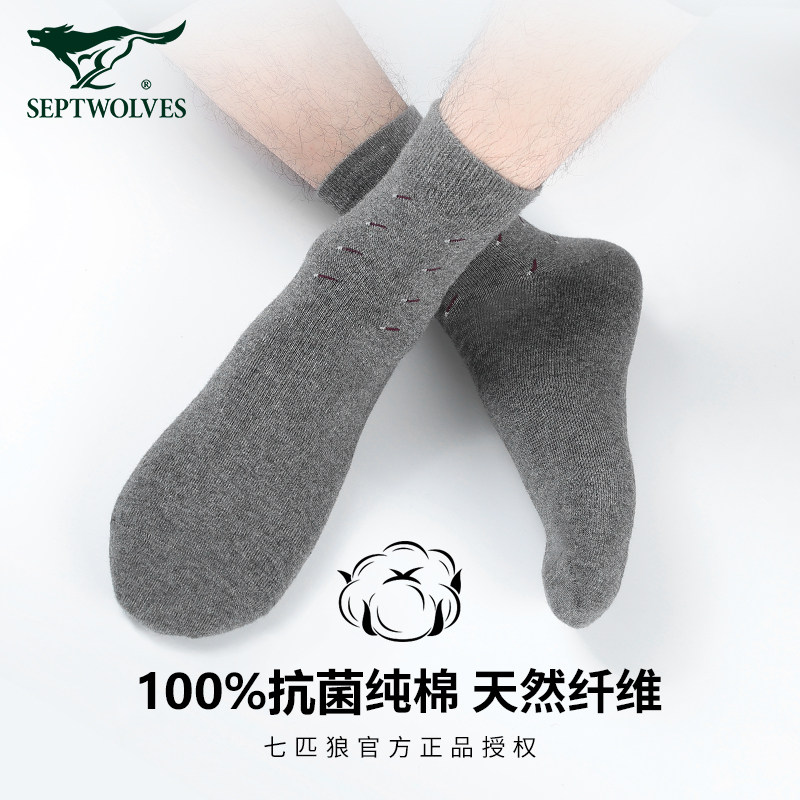 Septwolves, мужские хлопковые носки, черные демисезонные гольфы, средней длины, увеличенная толщина, впитывают пот и запах