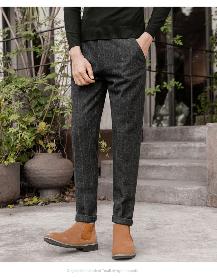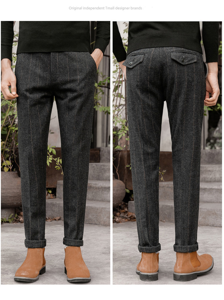 Шерстяные демисезонные ретро штаны, большой размер, облегающий крой