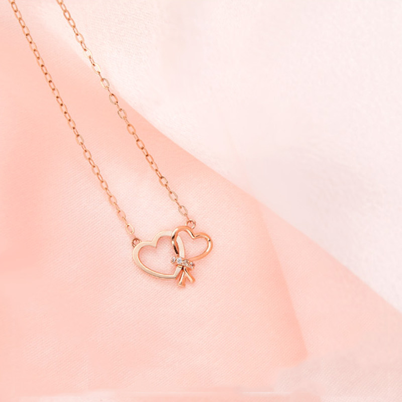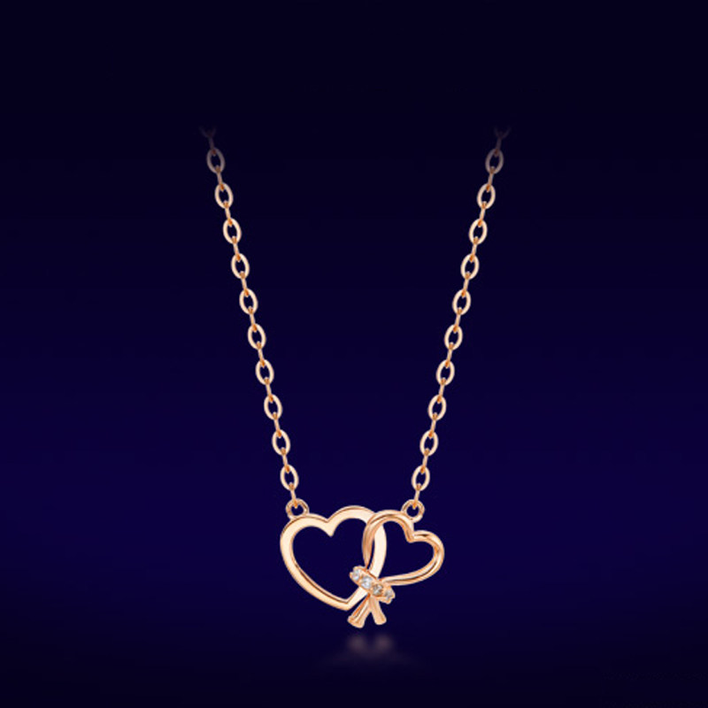 百赫 Золотая бриллиантовая модная сексуальная подвеска в форме сердца, цепочка до ключиц, 18 карат, розовое золото, легкий роскошный стиль