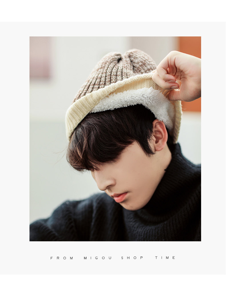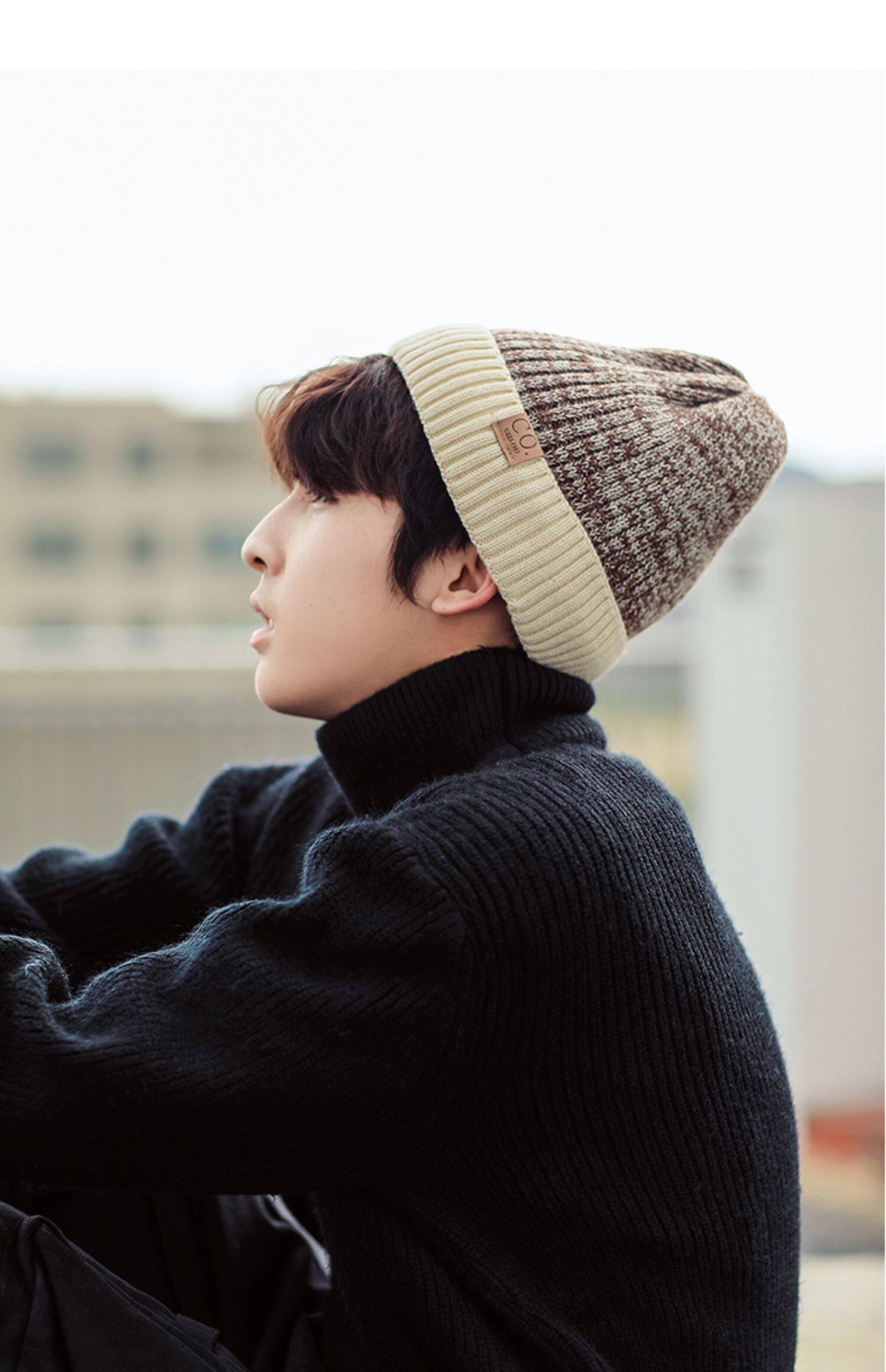 Утепленная шерстяная зимняя мужская удерживающая тепло вязаная шапка подходит для мужчин и женщин, в корейском стиле