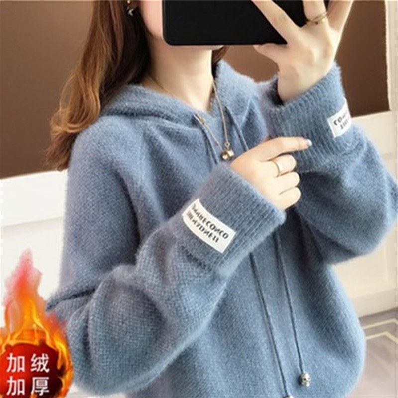 Демисезонный пуховик, короткий свитер, бархатная толстовка с капюшоном, в корейском стиле, оверсайз