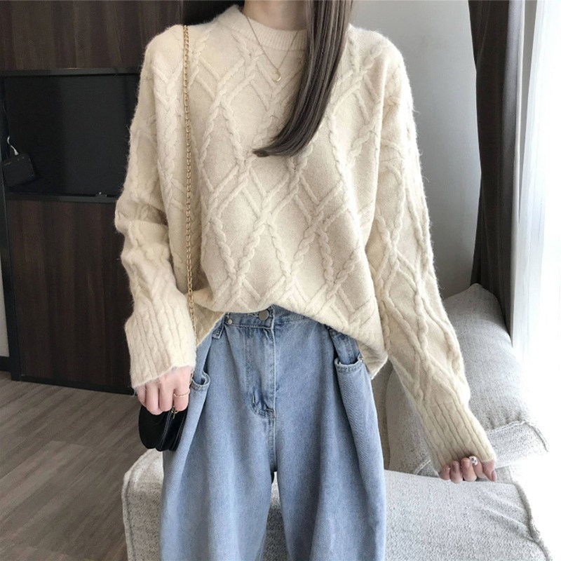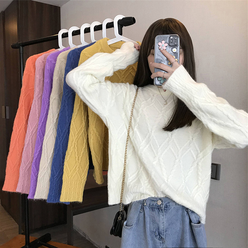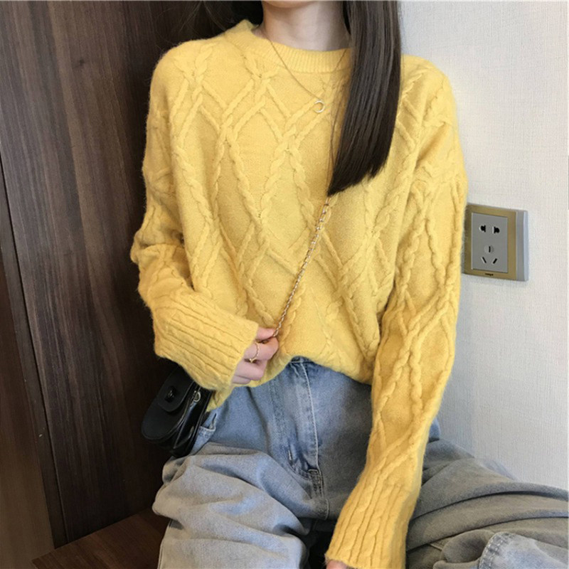 Демисезонный трикотажный свитер с круглым воротником, 2020, в корейском стиле, свободный крой, в западном стиле