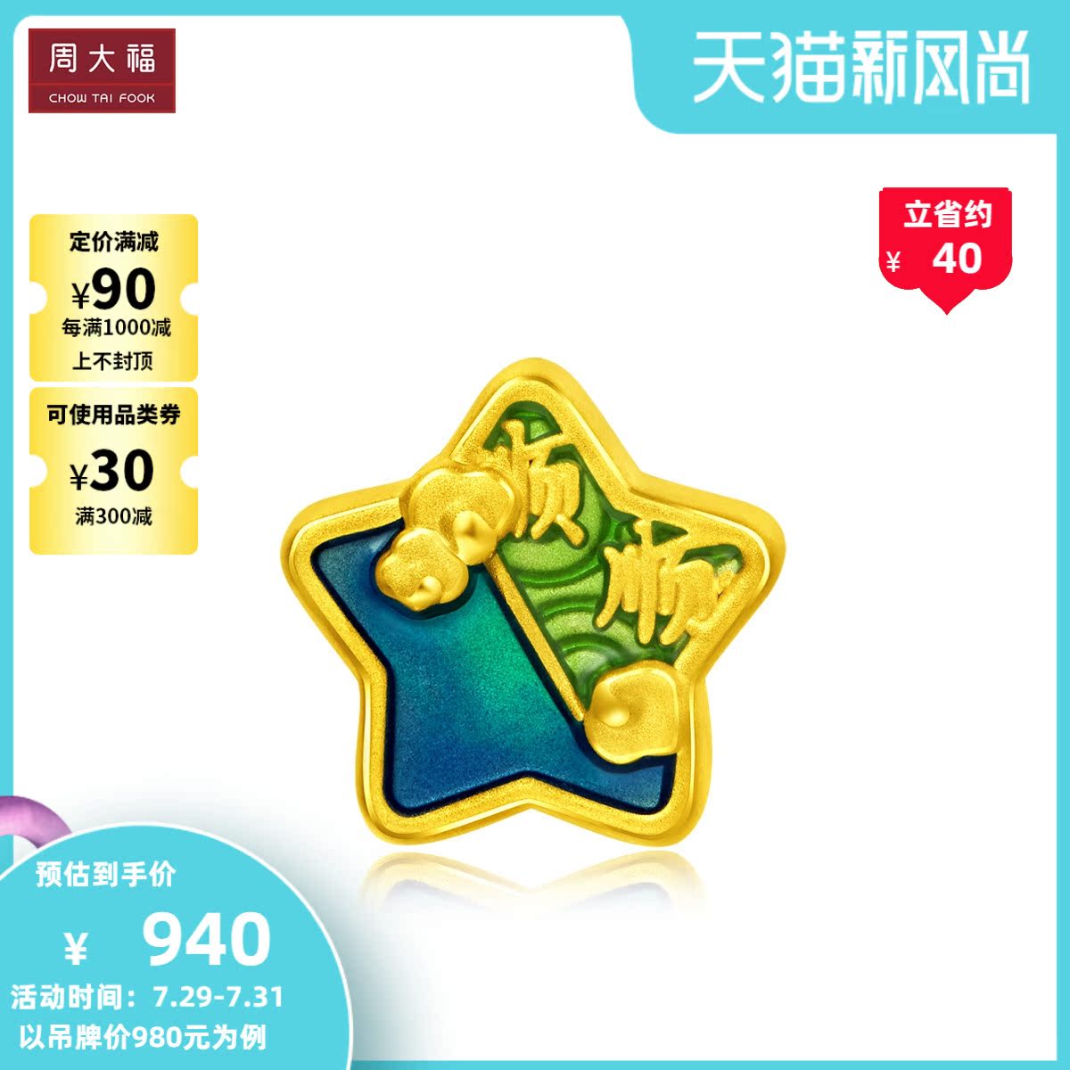 周大福 Ювелирное украшение, браслет с одной бусиной, золотая эмаль, подвеска, 3D
