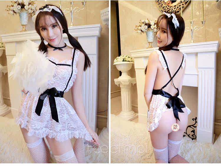 Милый прозрачный фартук, кружевная униформа, сексуальная пижама, комплект, платье