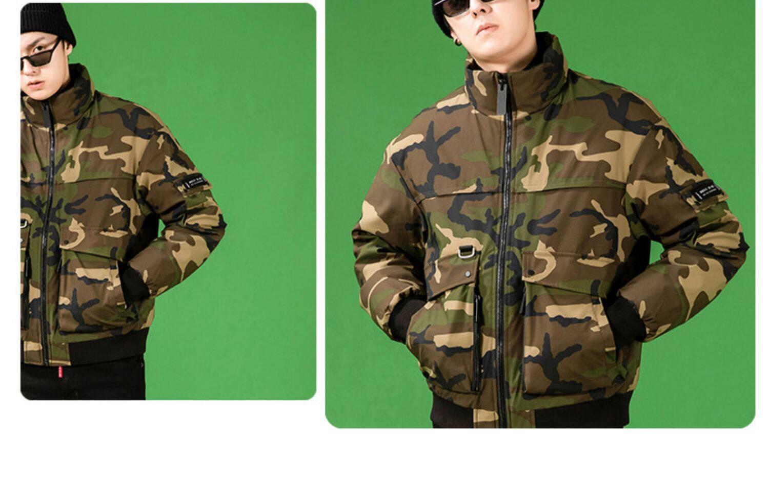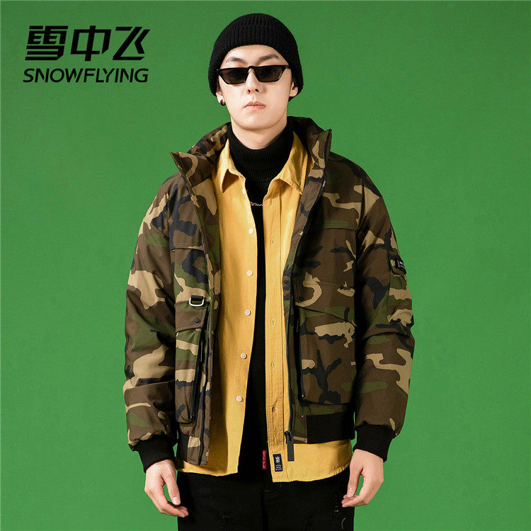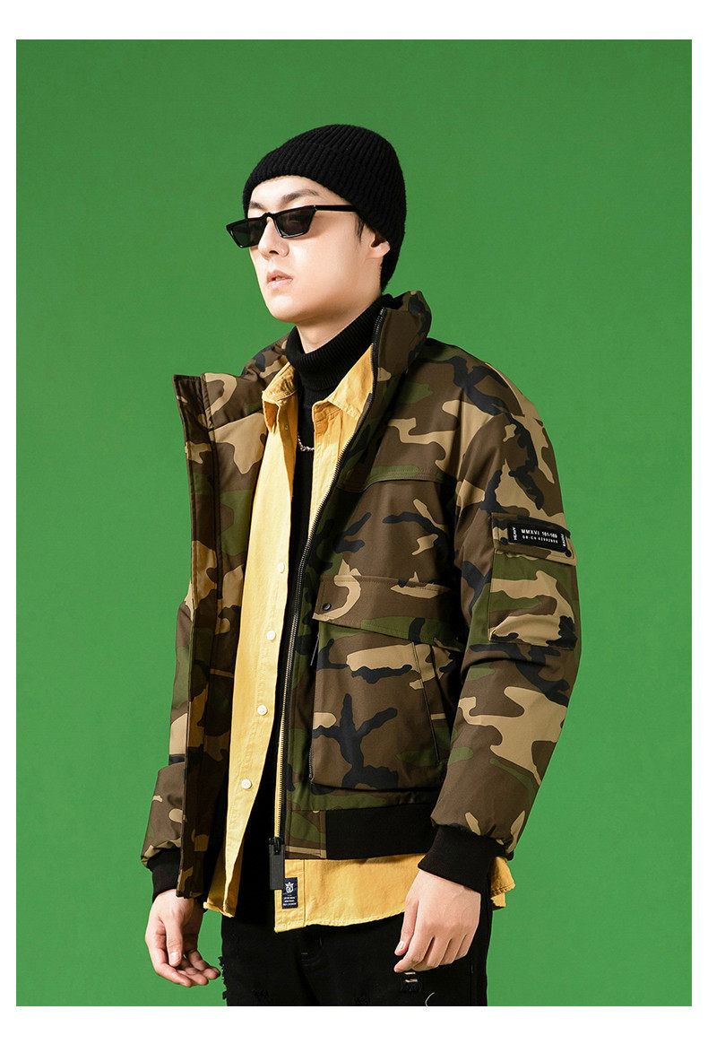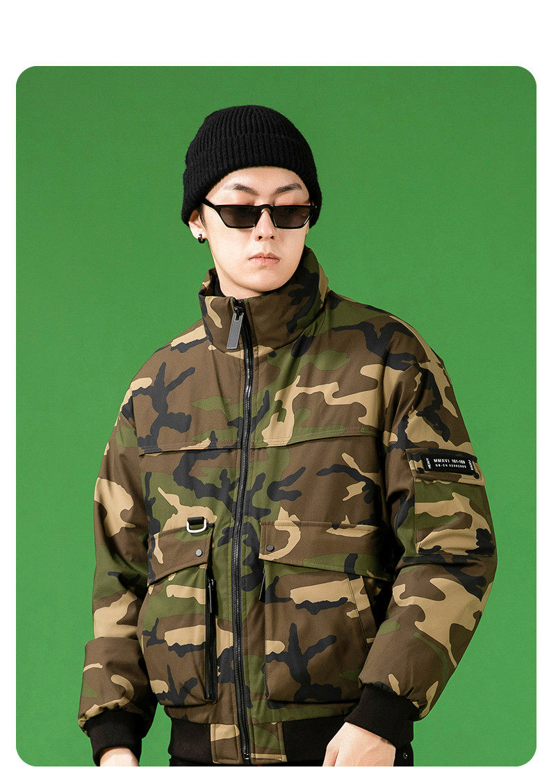 Демисезонный камуфляжный трендовый универсальный модный удерживающий тепло пуховик, коллекция 2021