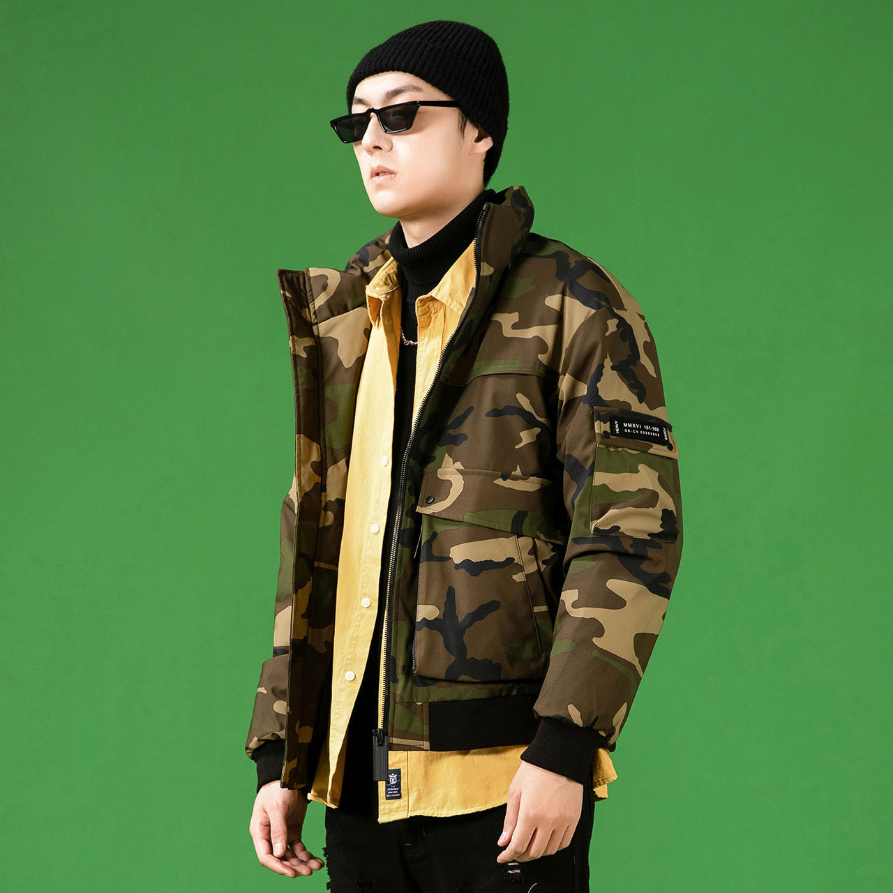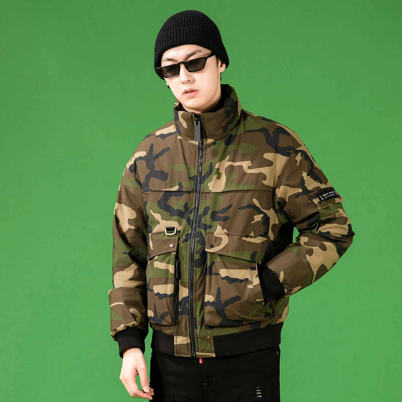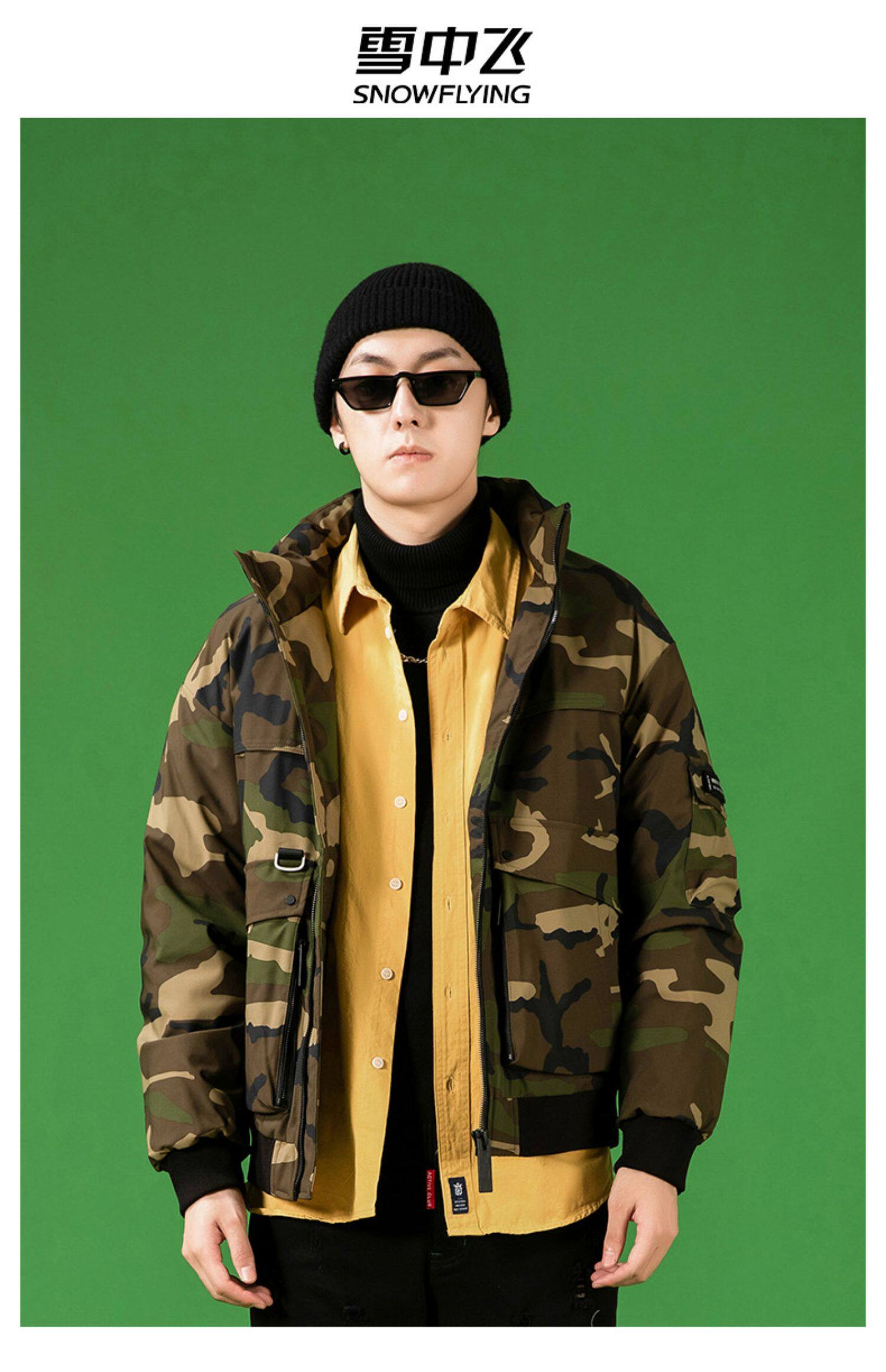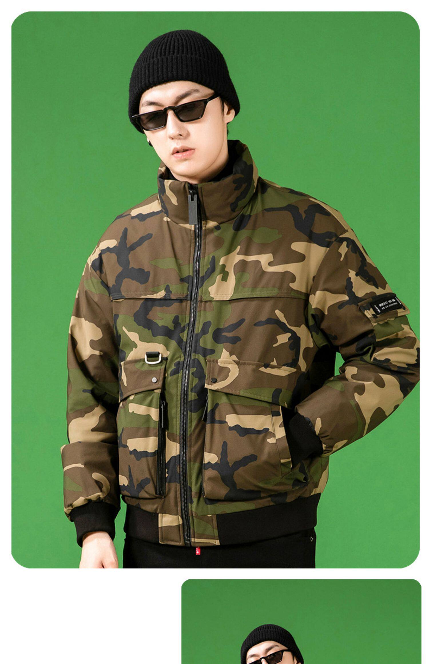 Демисезонный камуфляжный трендовый универсальный модный удерживающий тепло пуховик, коллекция 2021