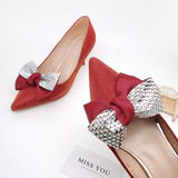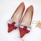 Универсальная пряжка для обуви с бантиком, красные съемные свадебные туфли