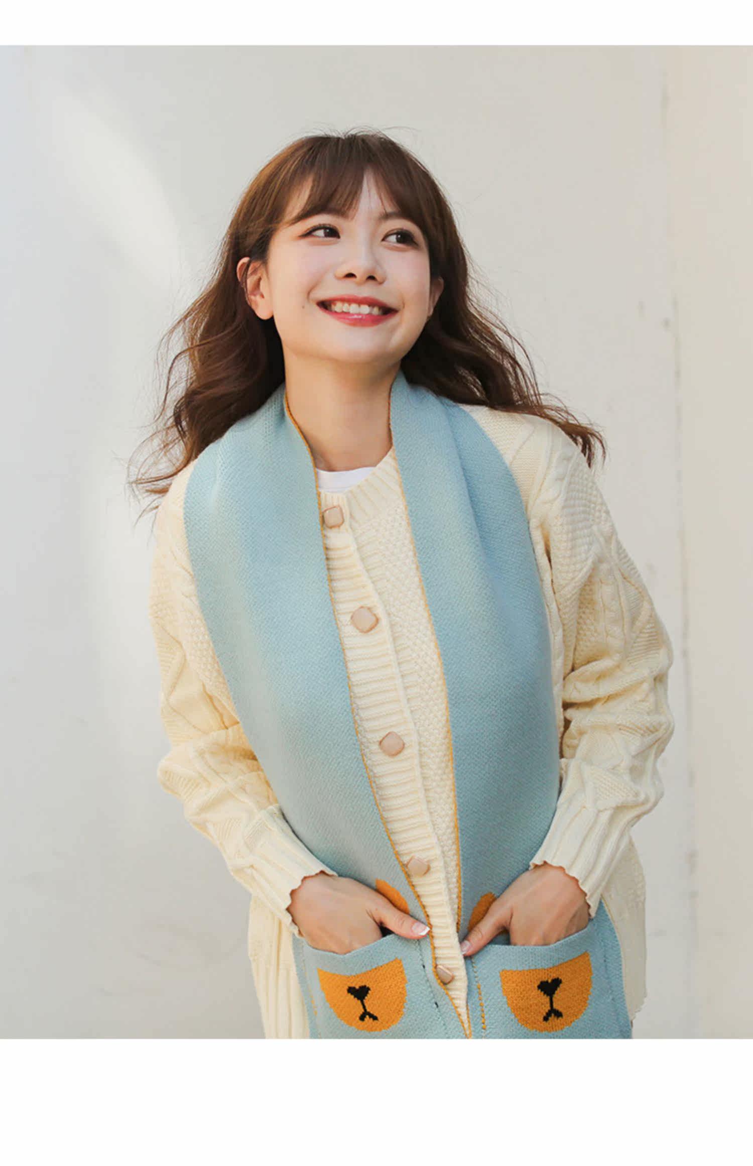 Брендовый креативный трикотажный динозавр, короткий двусторонний милый шарф для школьников, Южная Корея, с медвежатами