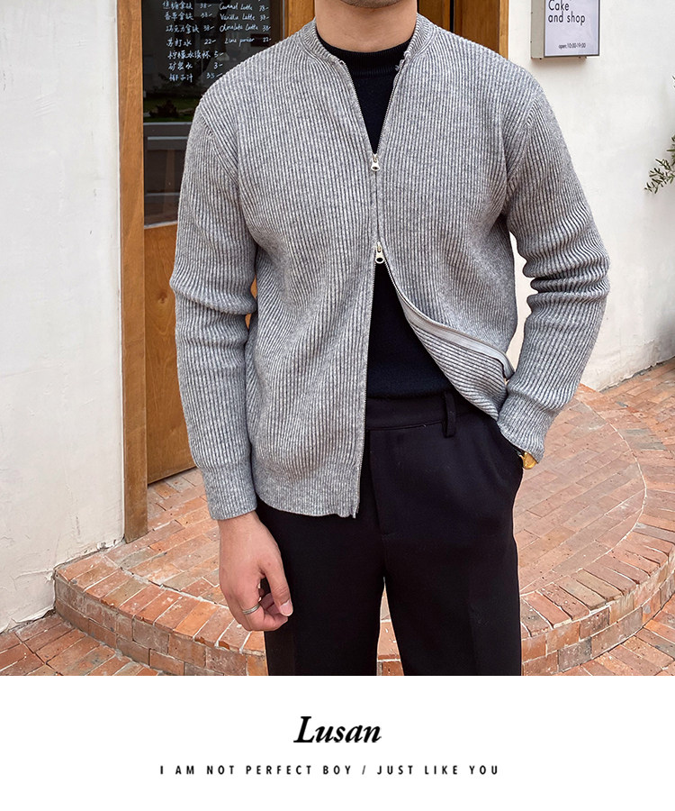 Осенняя шерстяная куртка с круглым воротником, трикотажный лонгслив, свитер
