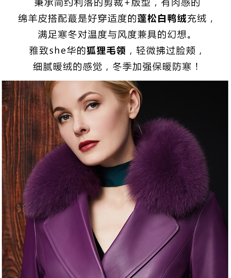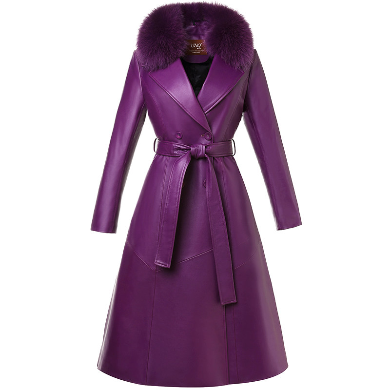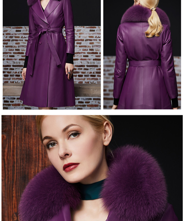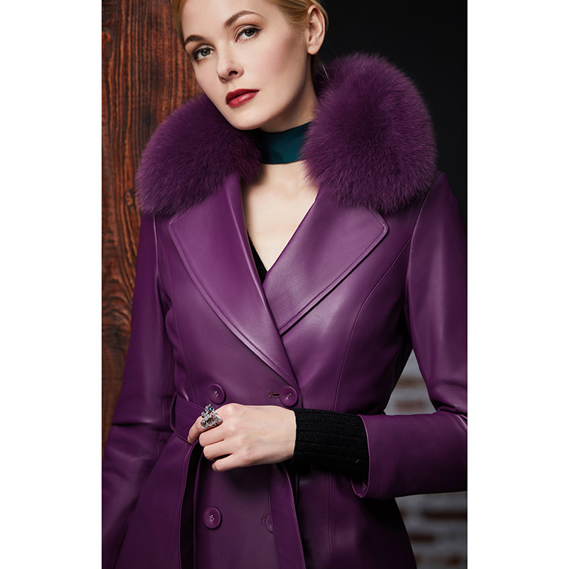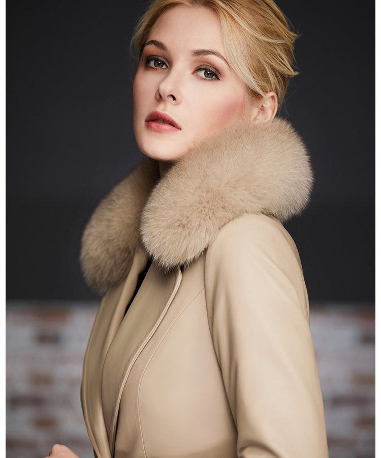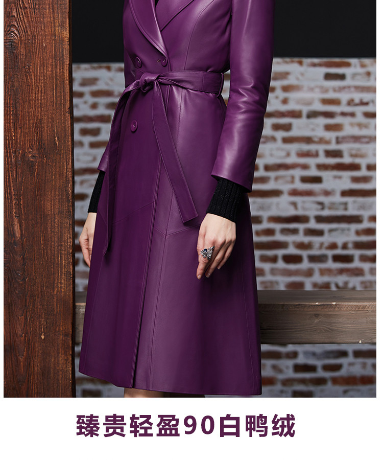 Элегантный длинный пуховик, плащ, французский стиль, облегающий крой, средней длины, из натуральной кожи