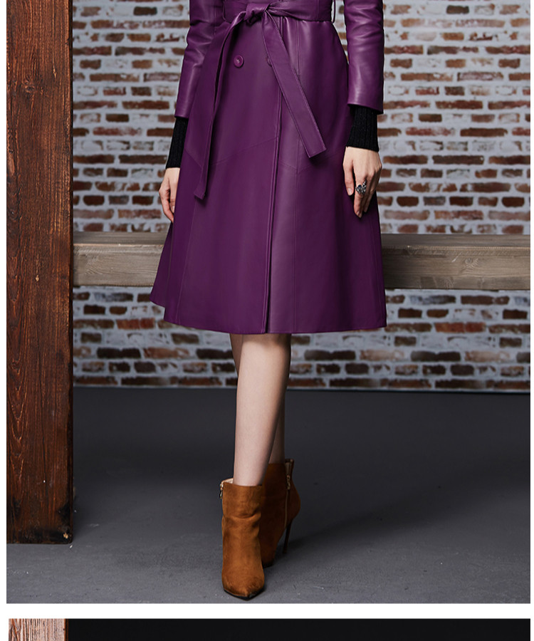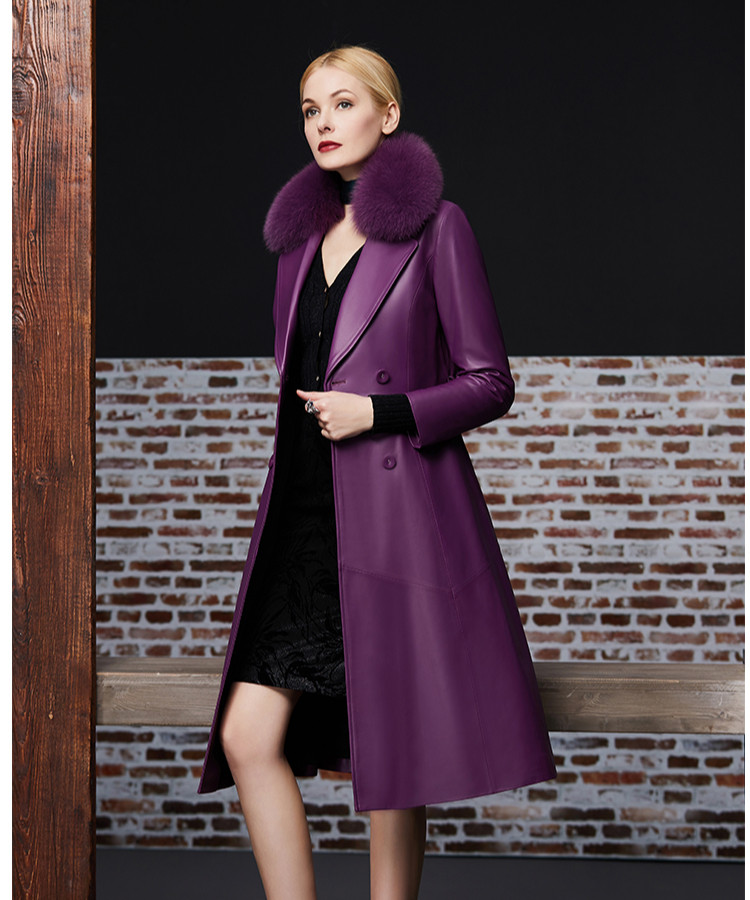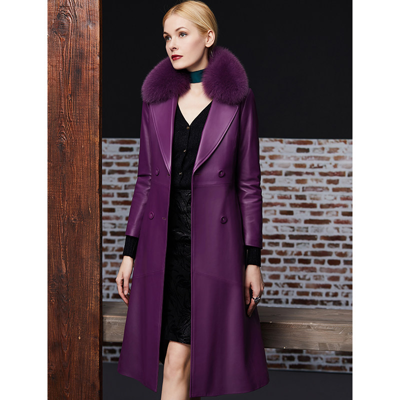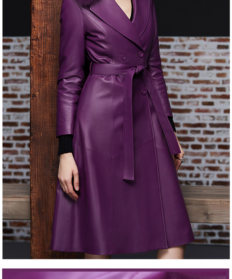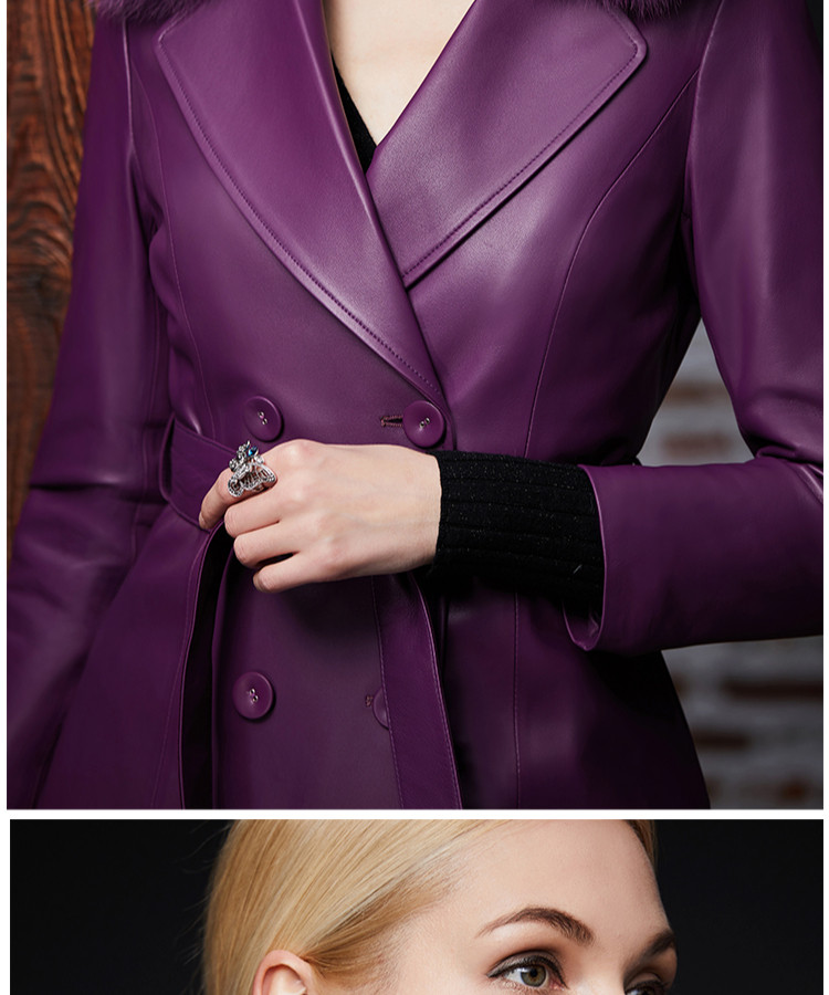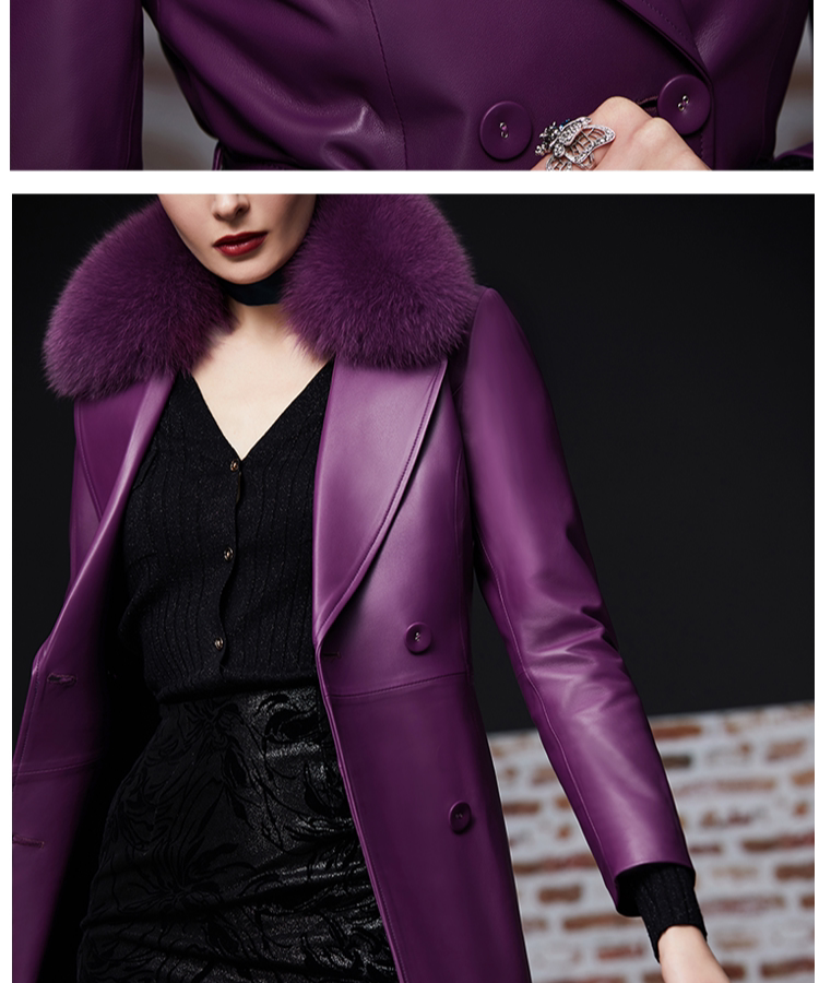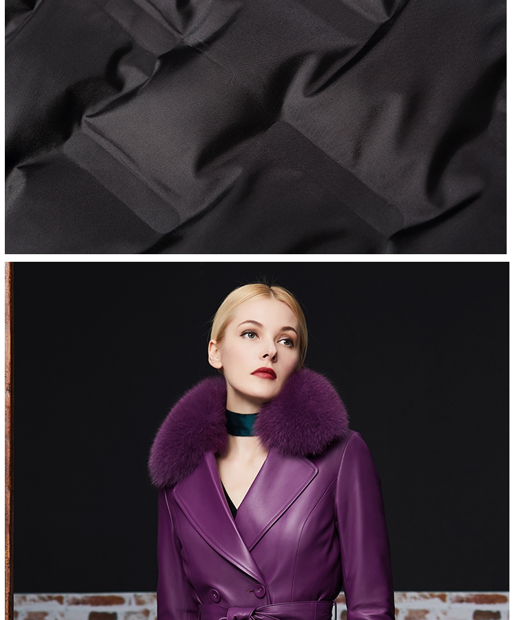 Элегантный длинный пуховик, плащ, французский стиль, облегающий крой, средней длины, из натуральной кожи