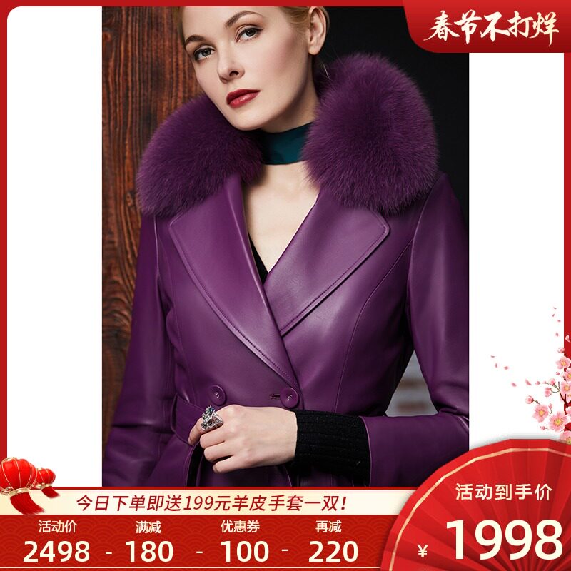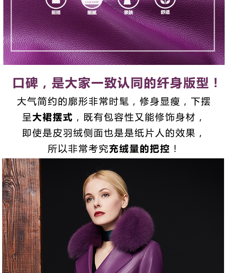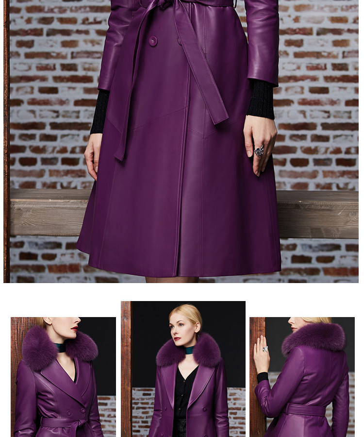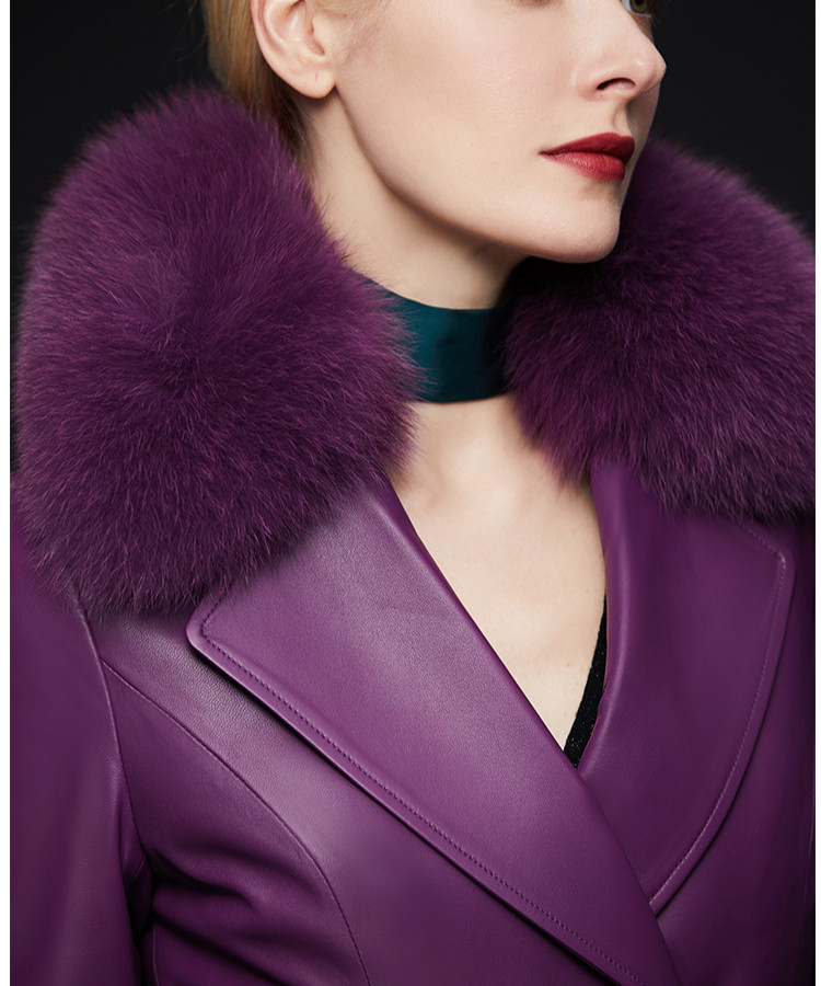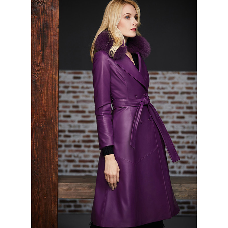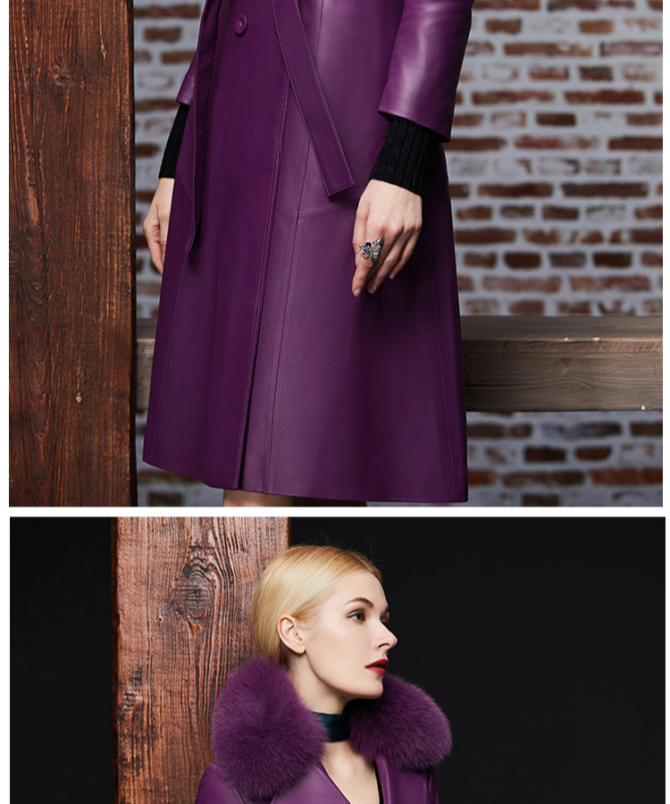 Элегантный длинный пуховик, плащ, французский стиль, облегающий крой, средней длины, из натуральной кожи