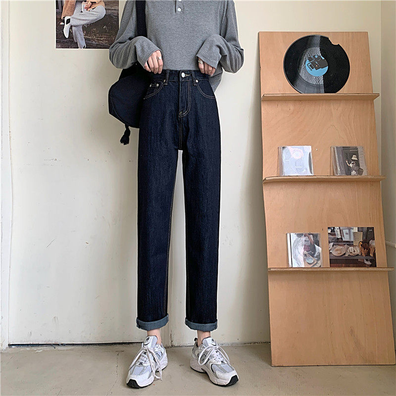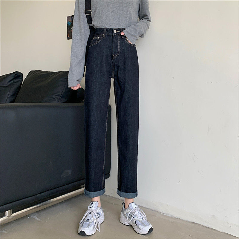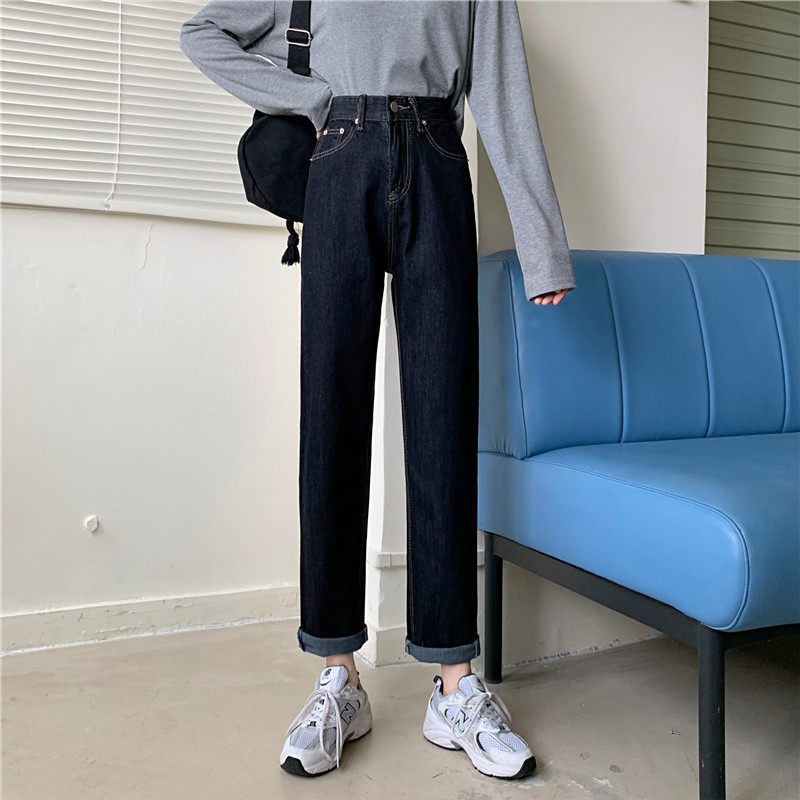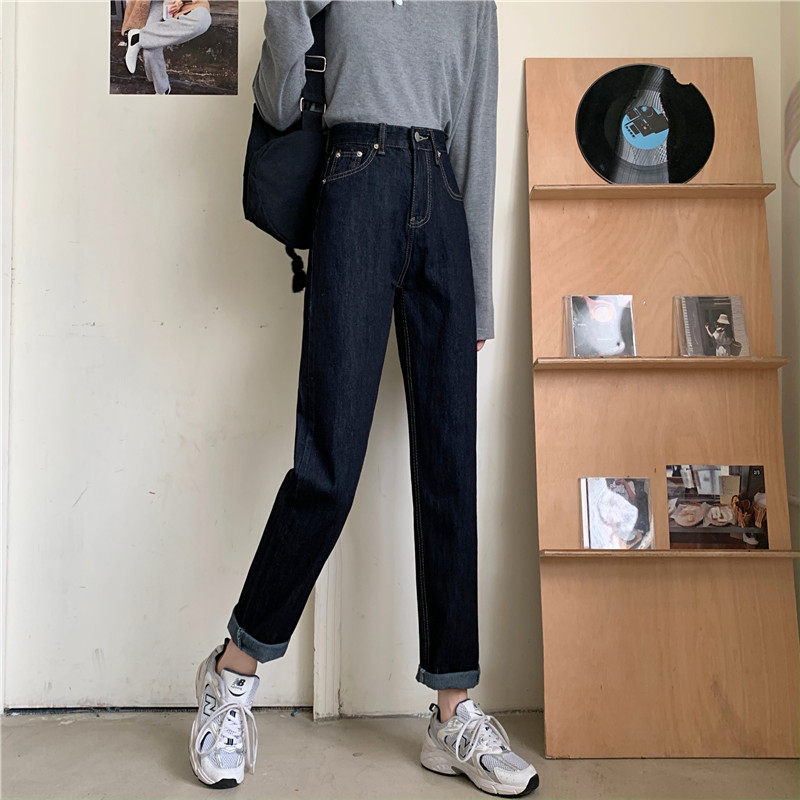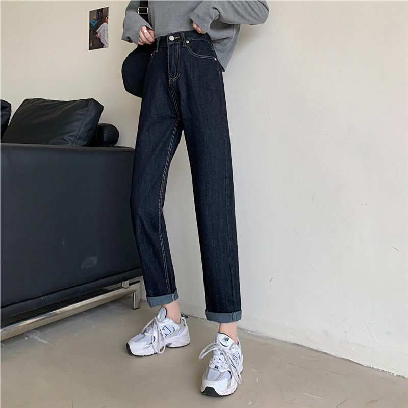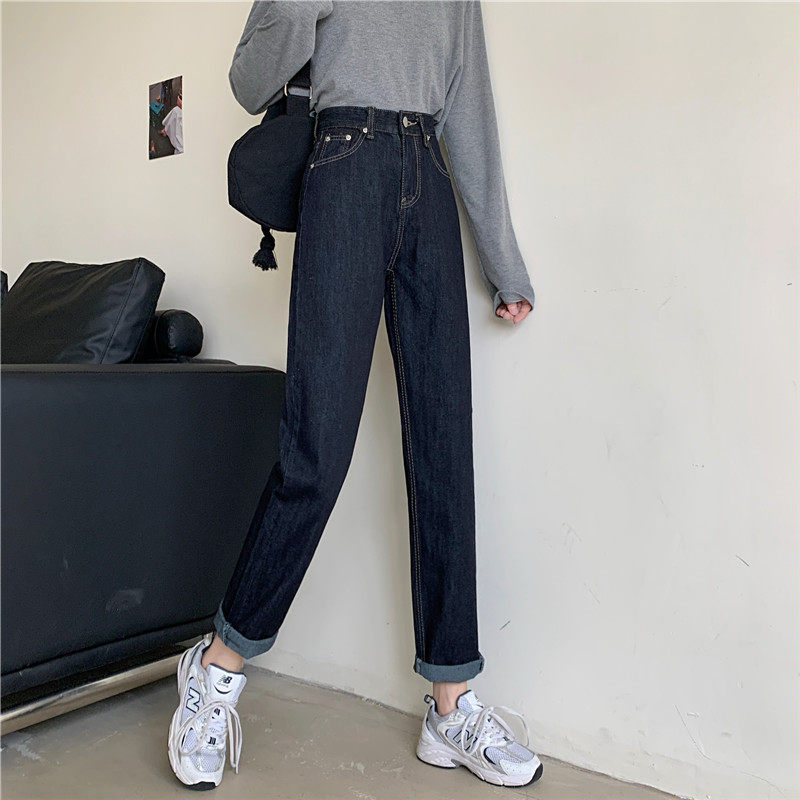 Джинсы, темно-синие осенние приталенные штаны, свободный прямой крой, коллекция 2022, высокая талия, большой размер
