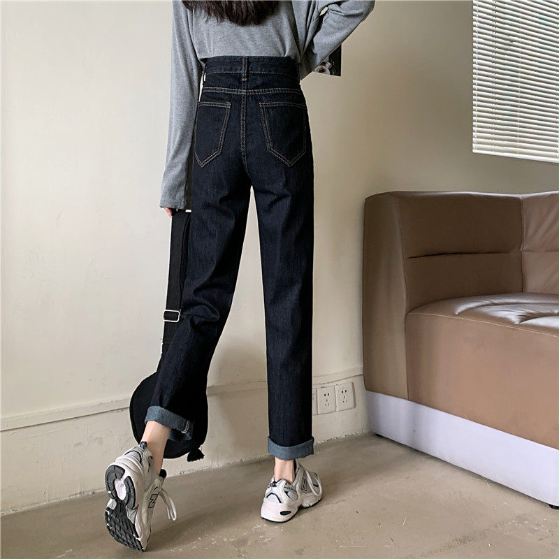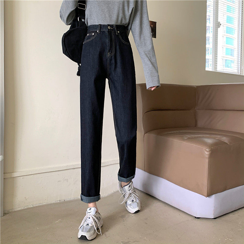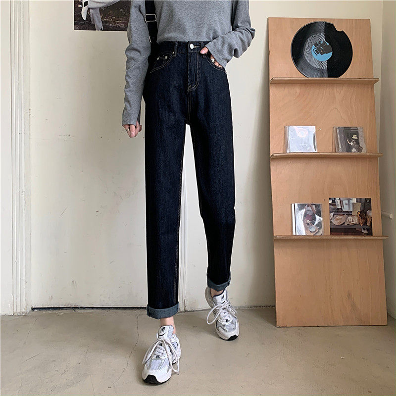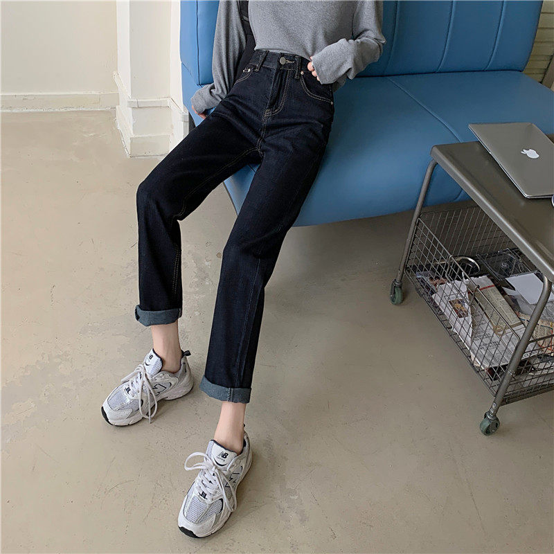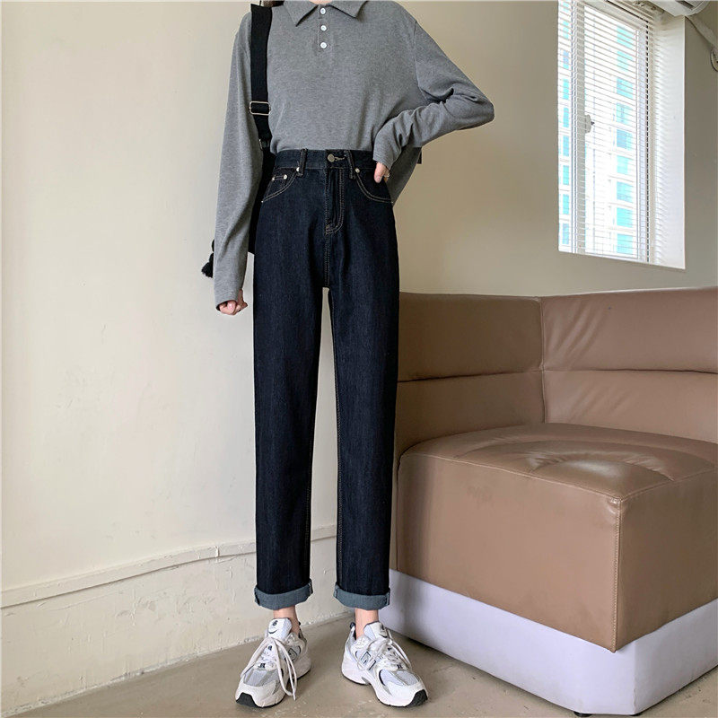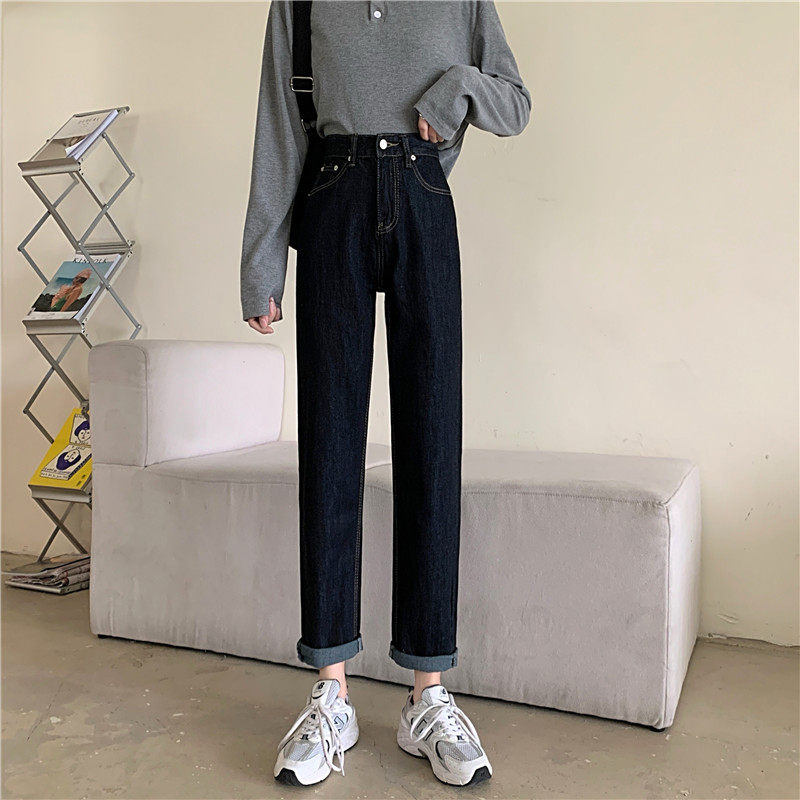 Джинсы, темно-синие осенние приталенные штаны, свободный прямой крой, коллекция 2022, высокая талия, большой размер