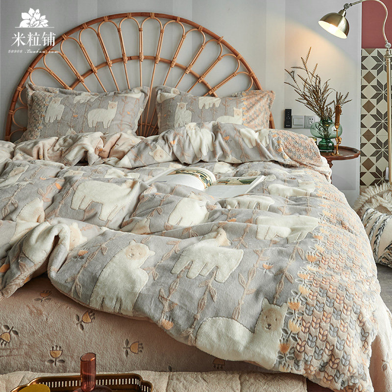 (Трансграничная торговля), элитный импортный детский удерживающий тепло комплект, демисезонное коралловое покрывало, 4 предмета, увеличенная толщина