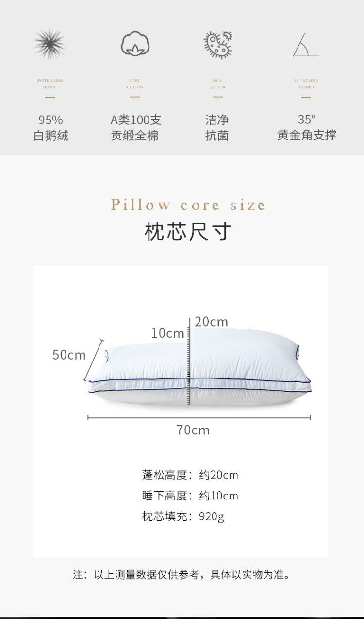 Mengjie Home Текстильная подушка 95 Гуси таблетки подушка 100 хлопковая подушка подушка подушка шейки матки набухание одиночное ядро подушки класса