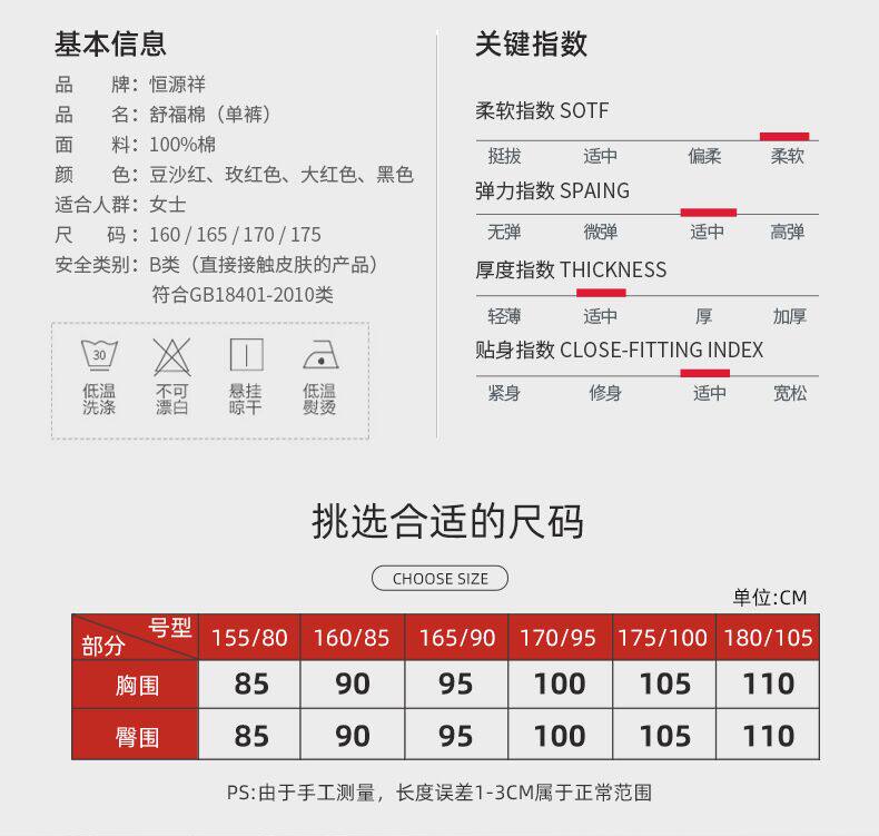 恒源祥 Удерживающее тепло нижнее белье, штаны, тонкое хлопковое термобелье