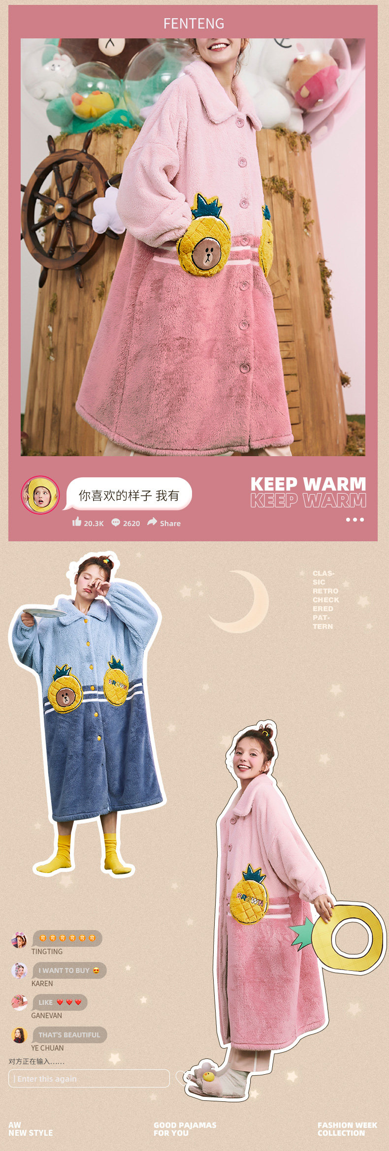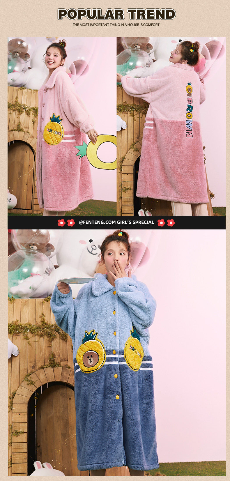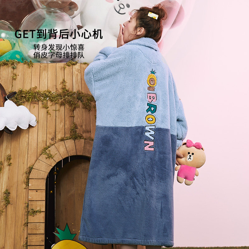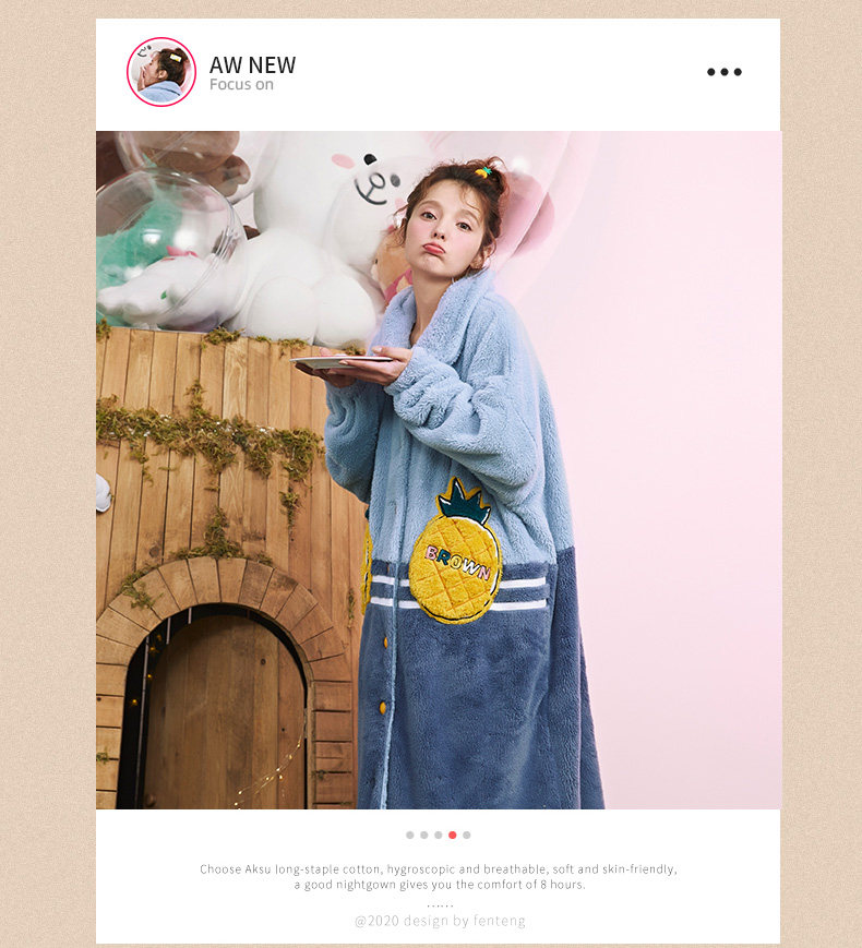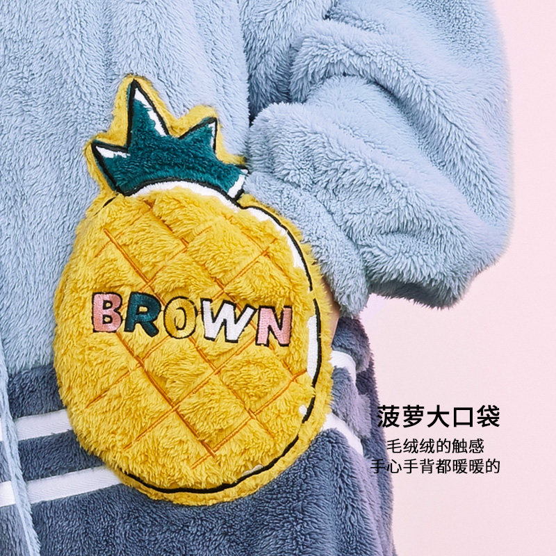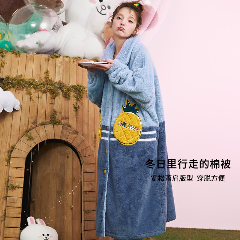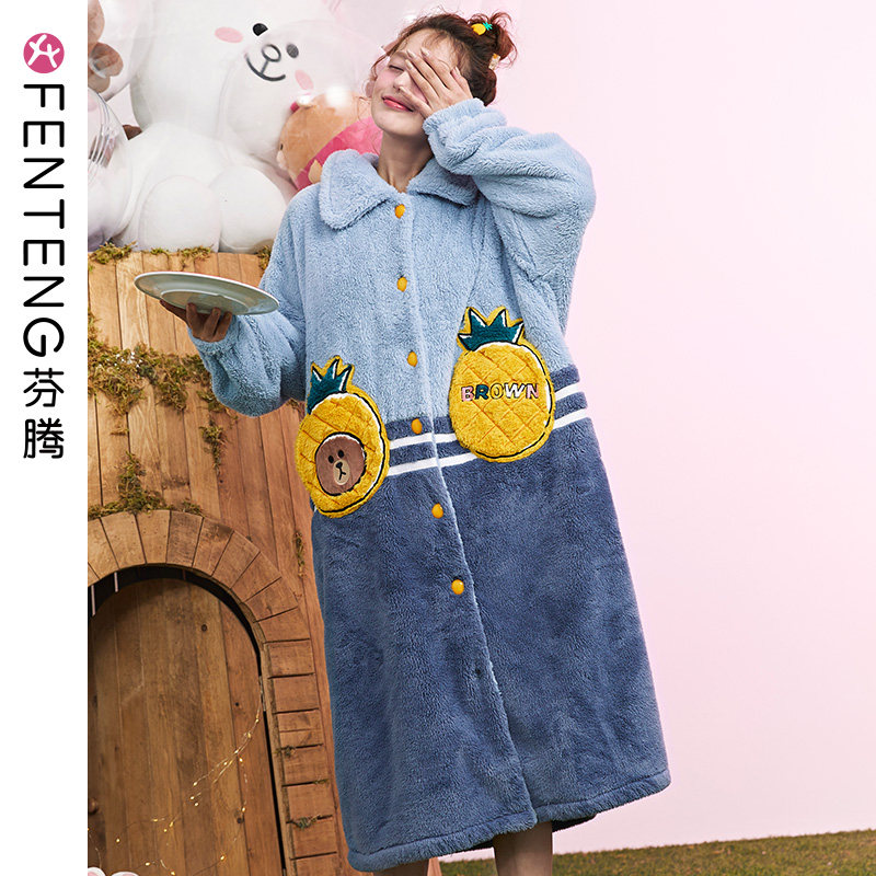 芬腾 Демисезонная коралловая пижама, бархатный длинный фланелевый зимний банный халат, увеличенная толщина