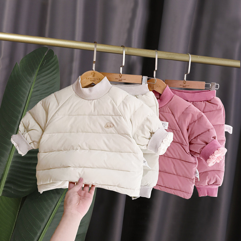 Детский пуховик, стеганый удерживающий тепло комплект для девочек для мальчиков, увеличенная толщина, коллекция 2021, в корейском стиле