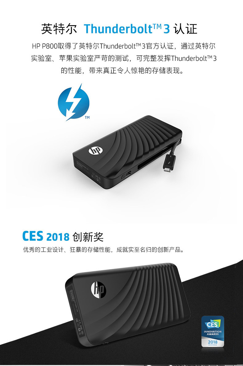 HP P800 Твердый -государственный мобильный жесткий диск 256G Thunderbolt Thunderbolt 3 Интерфейс SSD Portable External 250G