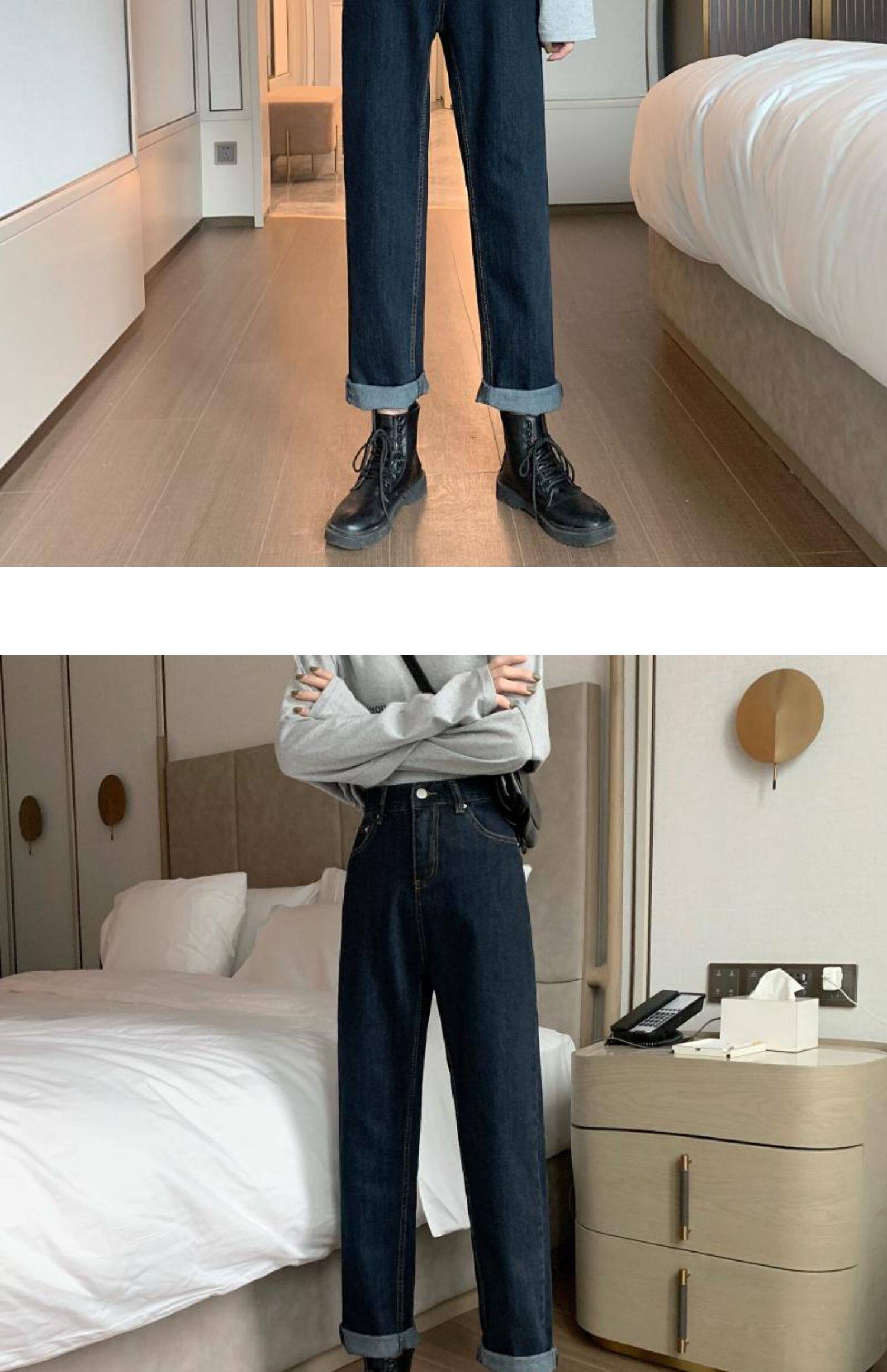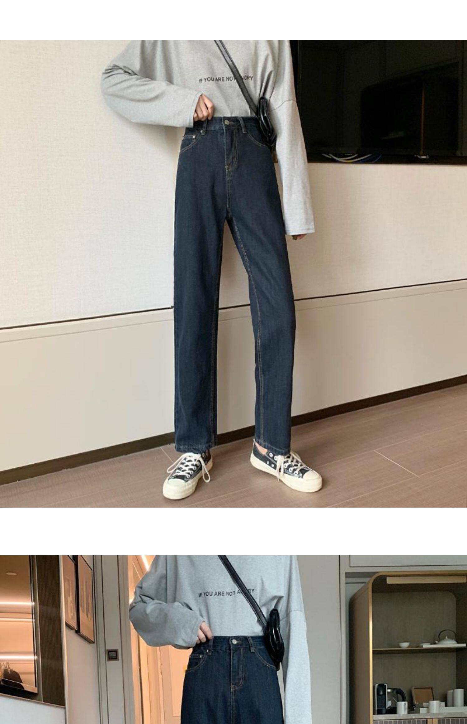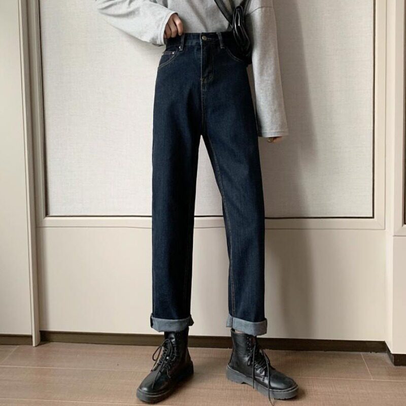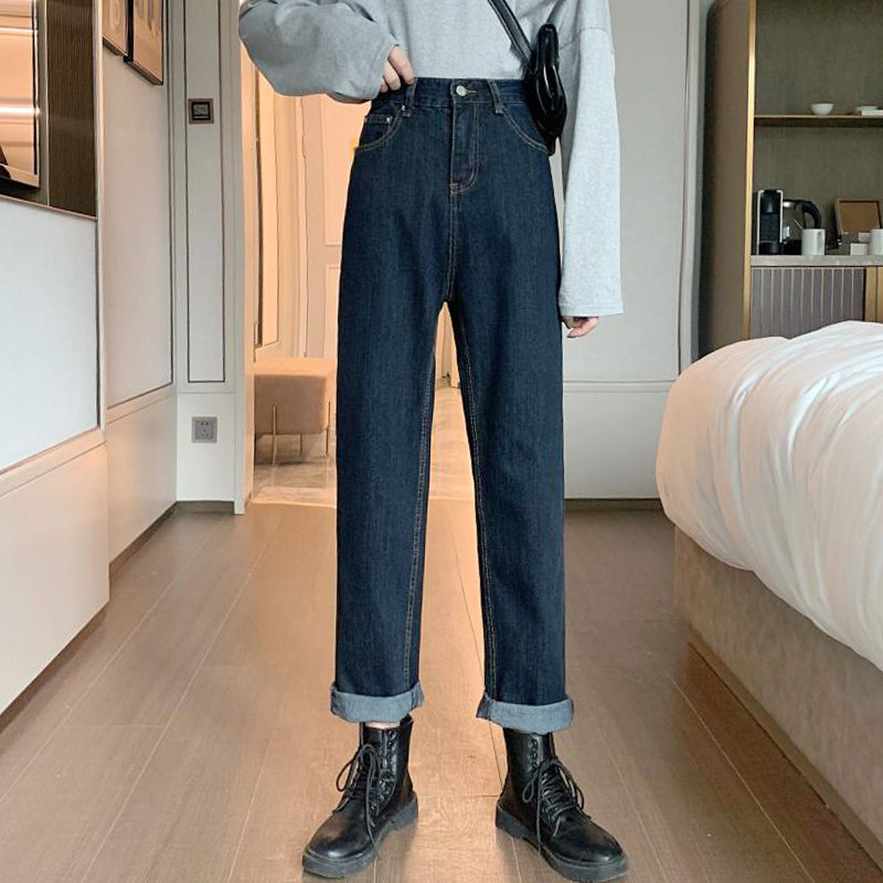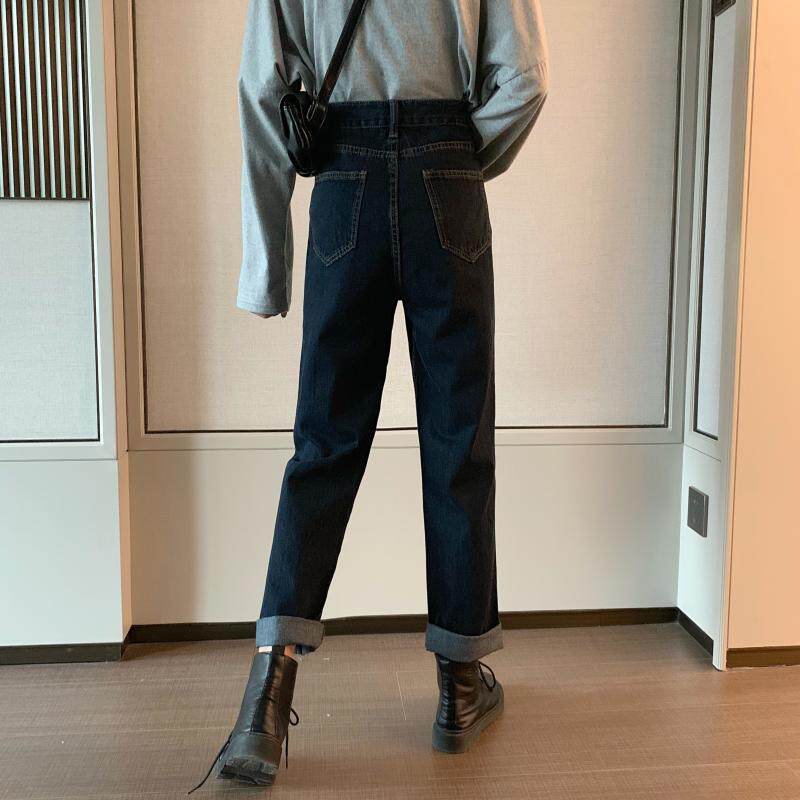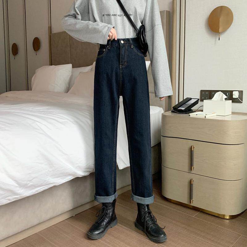 Осенние джинсы, приталенные штаны для школьников и студентов, коллекция 2022, большой размер, свободный прямой крой, высокая талия