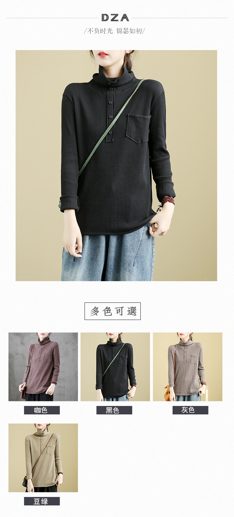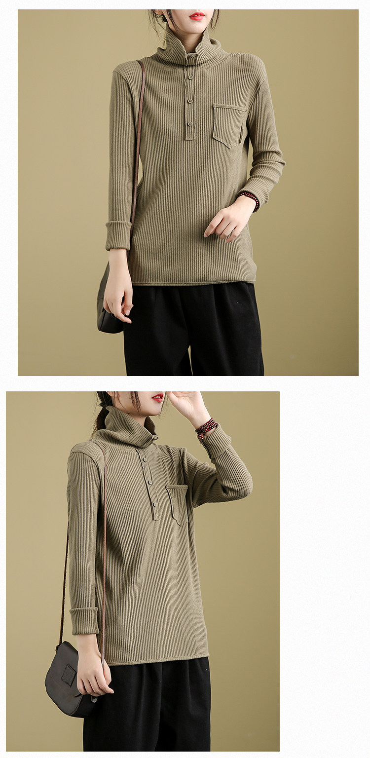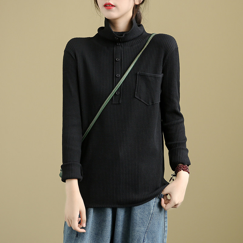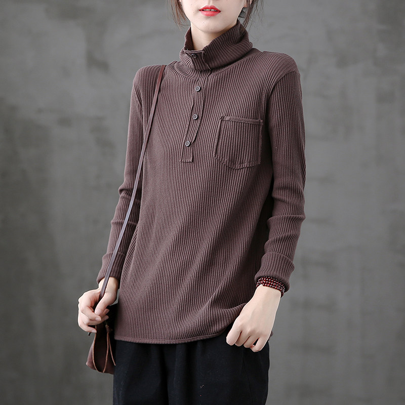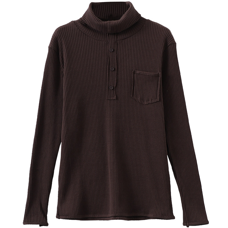 Ретро осенний базовый приятный телу лонгслив, высокий воротник